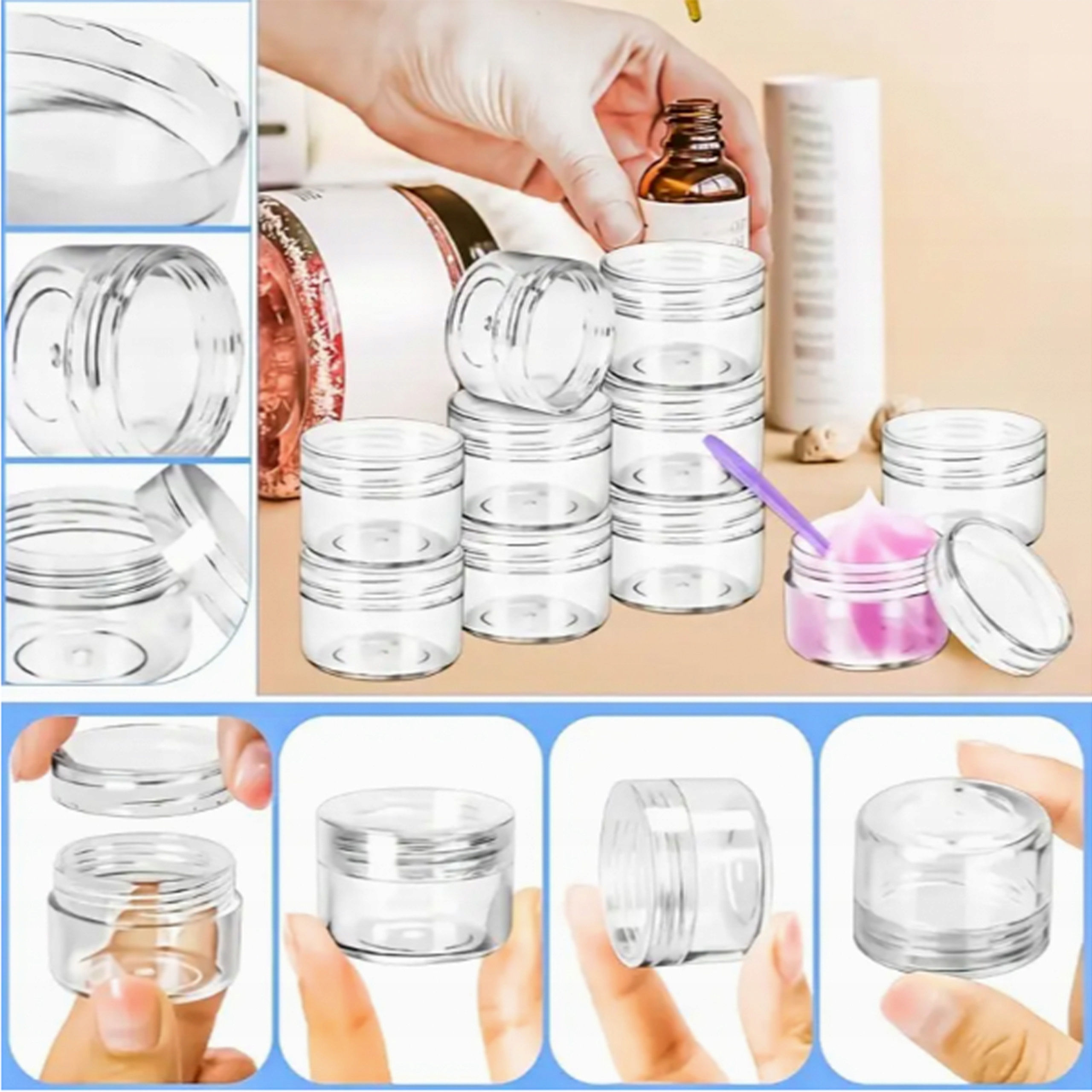 контейнери з ємністю 5 мл мають ідеальні розміри (діаметр 3 см , висота 1,6 см ), завдяки якому вони займають Мінімальний простір і в той же час забезпечуйте легкий доступ до збережених предметів.