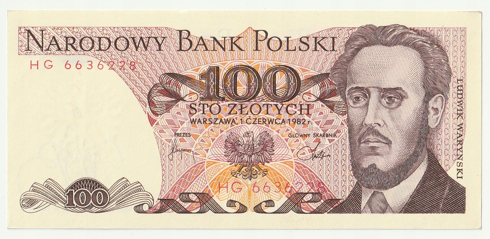 100 Zlotys 1982, серія HG, Stan 1,1- Перша серія року