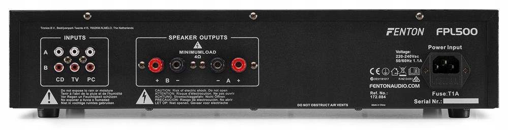 З Fenton FPL500 ви отримуєте потужний підсилювач класу D для багатьох застосувань. Підсилювач можна встановити в чохол для транспортування, тому він ідеально підходить для ді-джеїв.