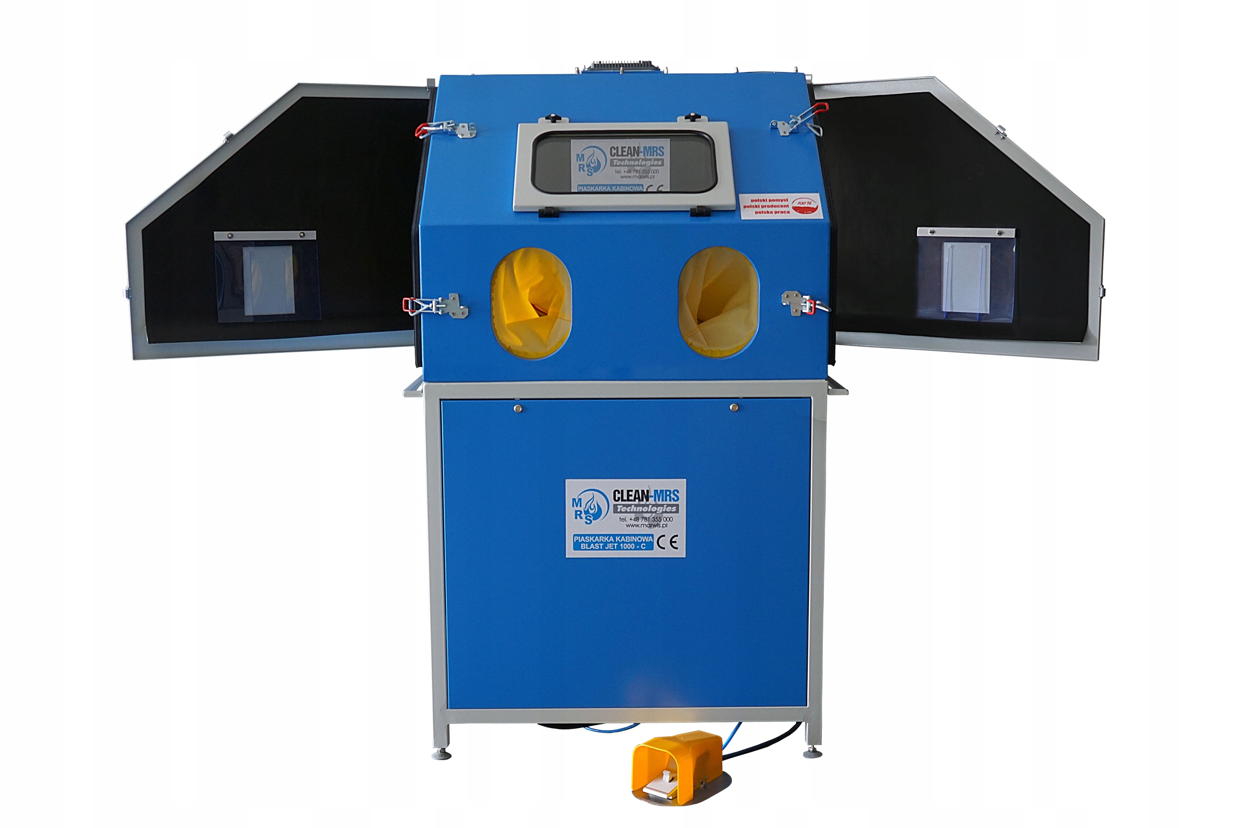 Кабінний піскоструминний апарат BLAST JET< /b > Виготовляється зі спеціально підібраної марки сталі товщиною до 3 мм. Його масивна, повністю зварена конструкція забезпечує тривалий термін служби, а порошкове покриття захищає від корозії. Оснащений світлодіодними лампами, що дозволяє створити комфортні умови експлуатації пристрою. Робота піскоструминної машини без пилу забезпечується використанням периферійних ущільнень, що дозволяє виконувати роботу екологічно безпечним способом.