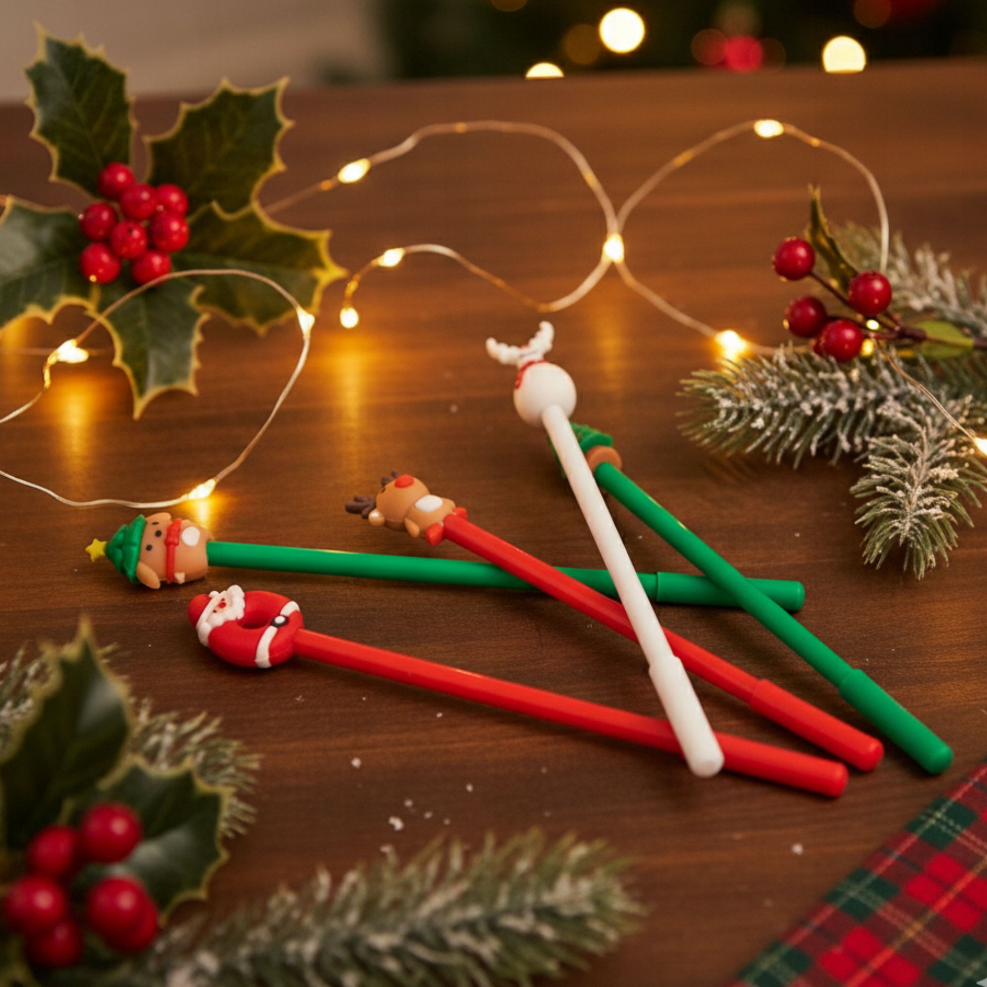 ⭐Кожна ручка має барвисту 3D-накладку з різдвяним мотивом, яка привертає увагу та створює зимову атмосферу з першого погляду. М'який силіконовий елемент приємний на дотик і надає ручкам винятково оригінальний вигляд. Кольори у відтінках червоного, зеленого та білого ідеально відповідають різдвяній естетиці, а завдяки високій якості виготовлення ручки міцні та зручні у використанні. Це ідеальне доповнення до вашого столу, шкільного пеналу чи різдвяного подарунка ✨.