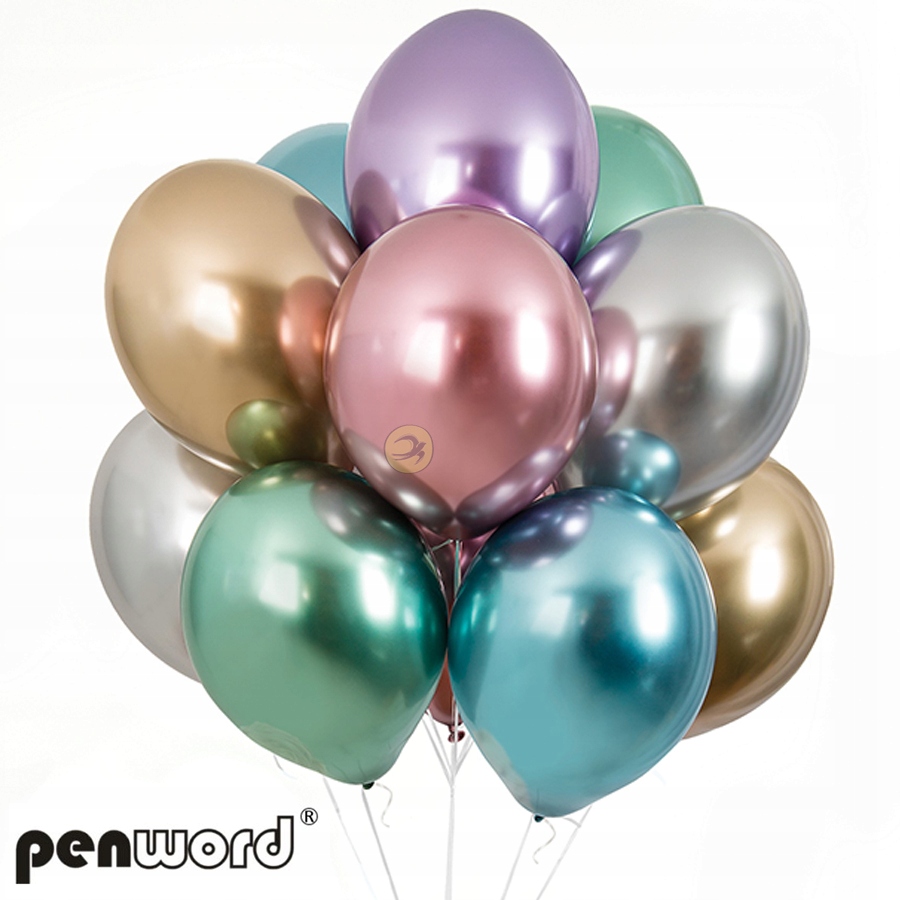 Чи можете ви уявити собі вечірку без різнокольорових повітряних кульок? Ці від Penword ідеально підійдуть. У упаковці 10 повітряних кульок металевого кольору. Діаметр у надутому стані: 12 дюймів / 30 см. Зроблено в Євросоюзі.