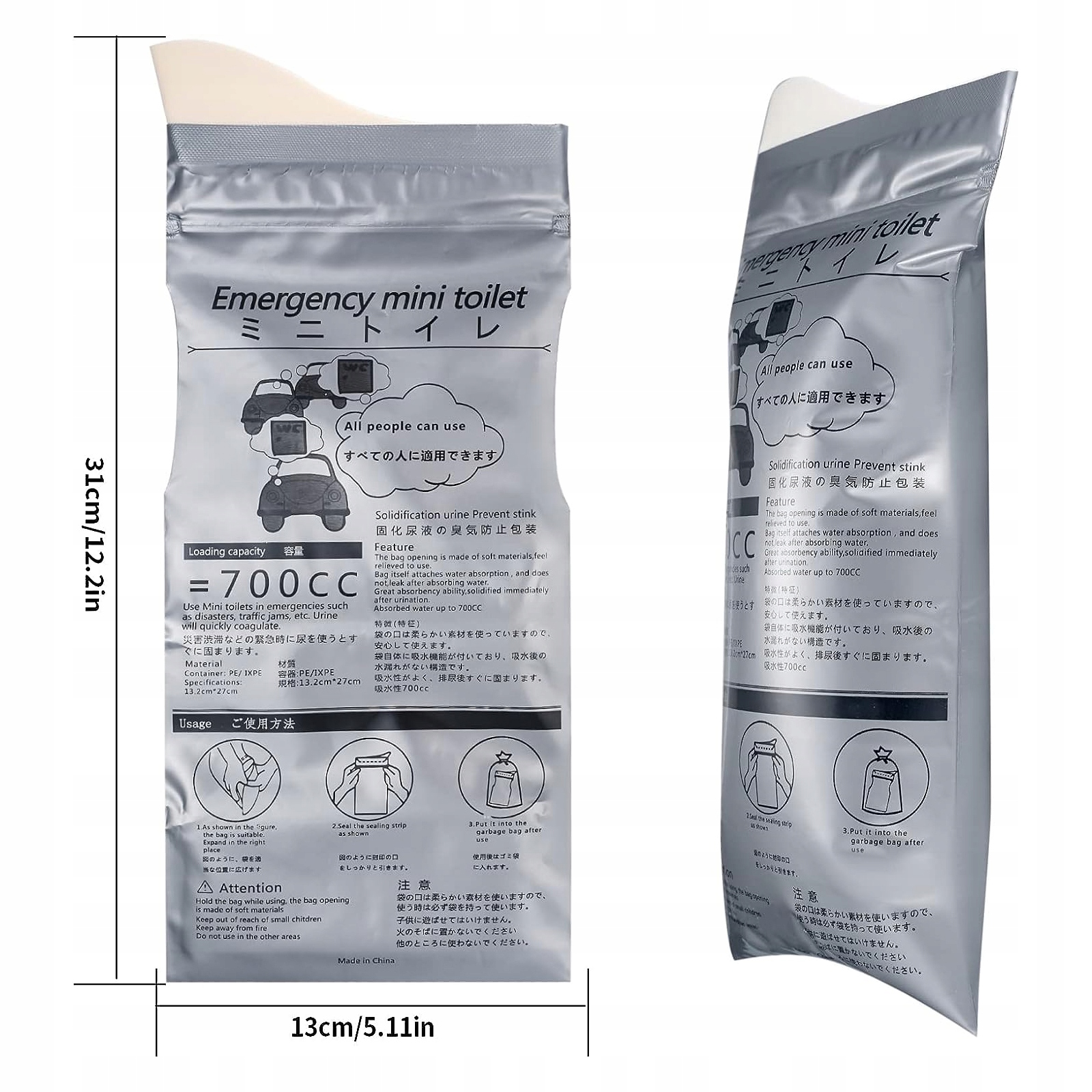 ✅【Комплект поставки】Набір включає 12 пакетів для сечі, розміри 31 x 13,5 см, ємність 700 мл, ідеально підходить для екстрених випадків або ситуацій, коли туалет важкодоступний.