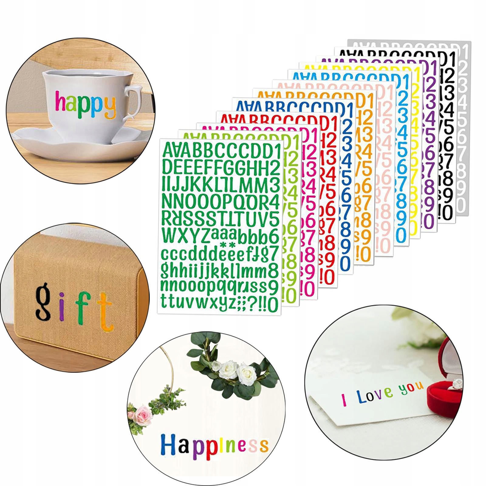 Пакет включає: барвисті 12 аркушів самостійні вінілові літери цифри, кожна загальна кількість 126 штук.