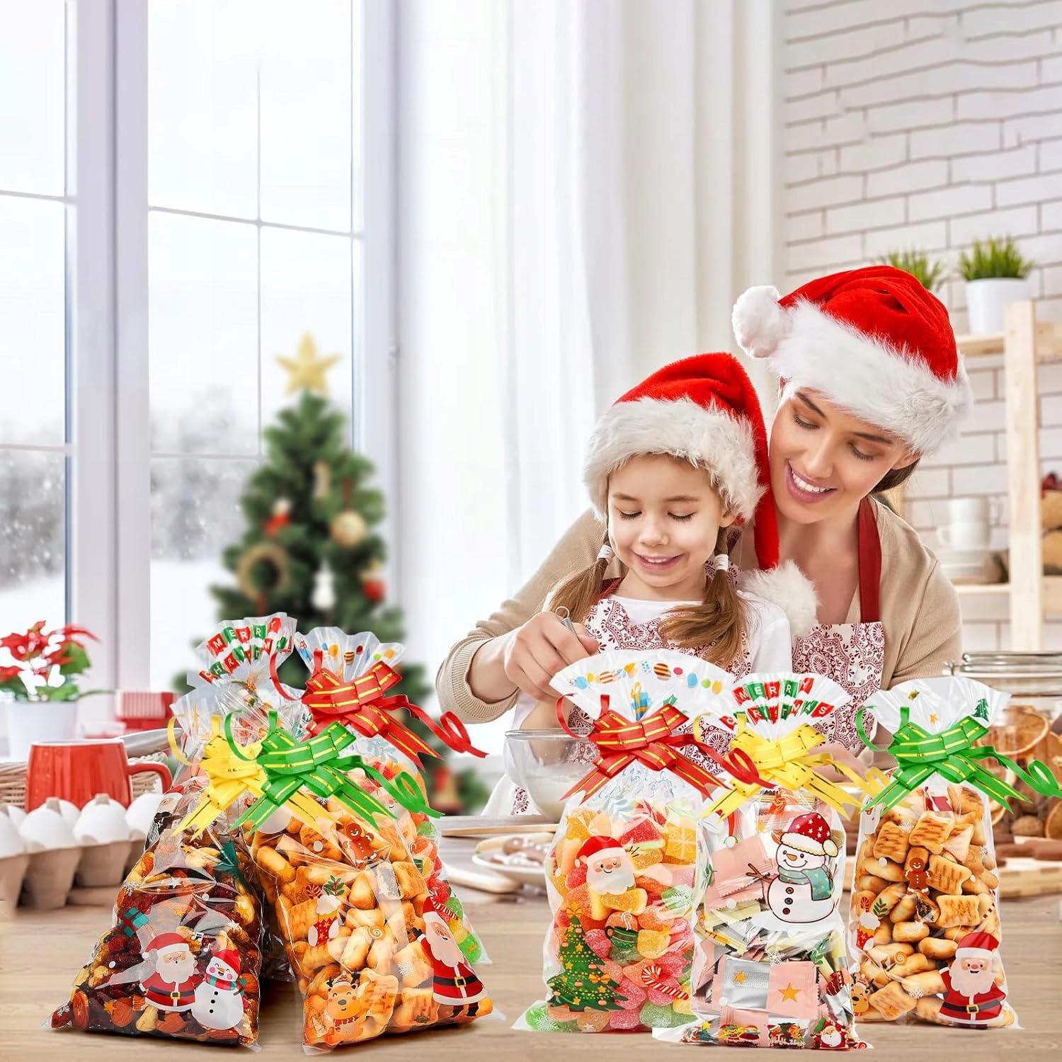 Широкий асортимент застосувань: прозорі різдвяні мішки підходять для зберігання цукерок, печива, шоколадних цукерок, тортів, сухофруктів, фруктів, горіхів та попкорну тощо. Сумки для багаторазового печива - ідеальні різдвяні сумки для різдвяних тортів, Великдень, Хеллоуїн, вечірки, подарунки на день народження, різдвяні презентації для різдвяних пр.