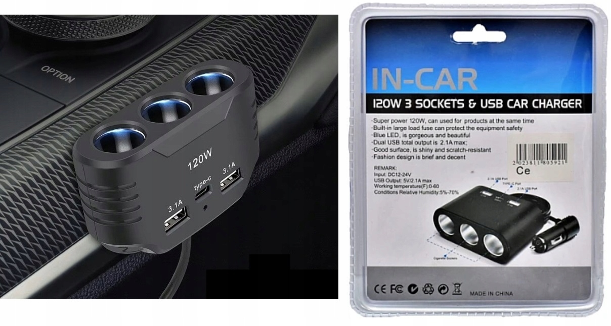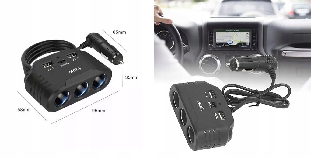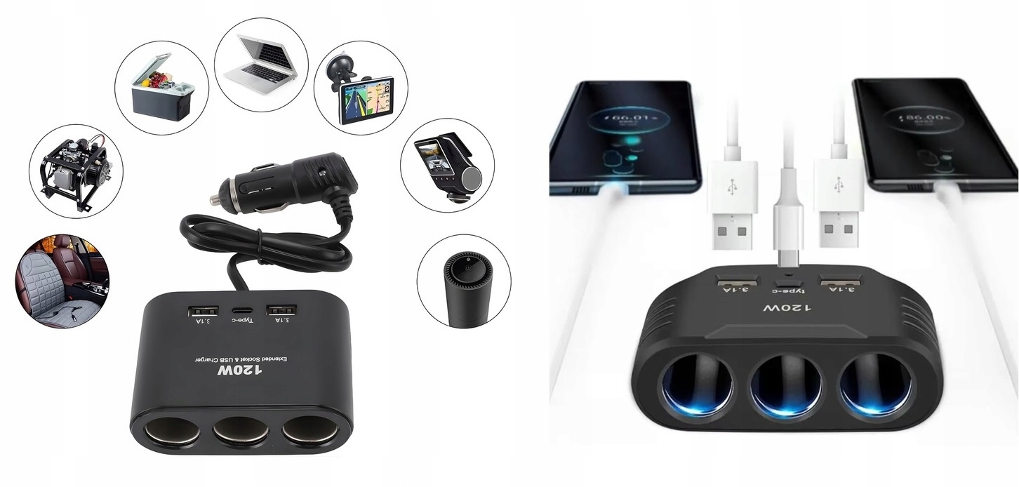 - 3x легші розетки- ідеально підходить для зарядки більшої кількості аксесуарів одночасно.