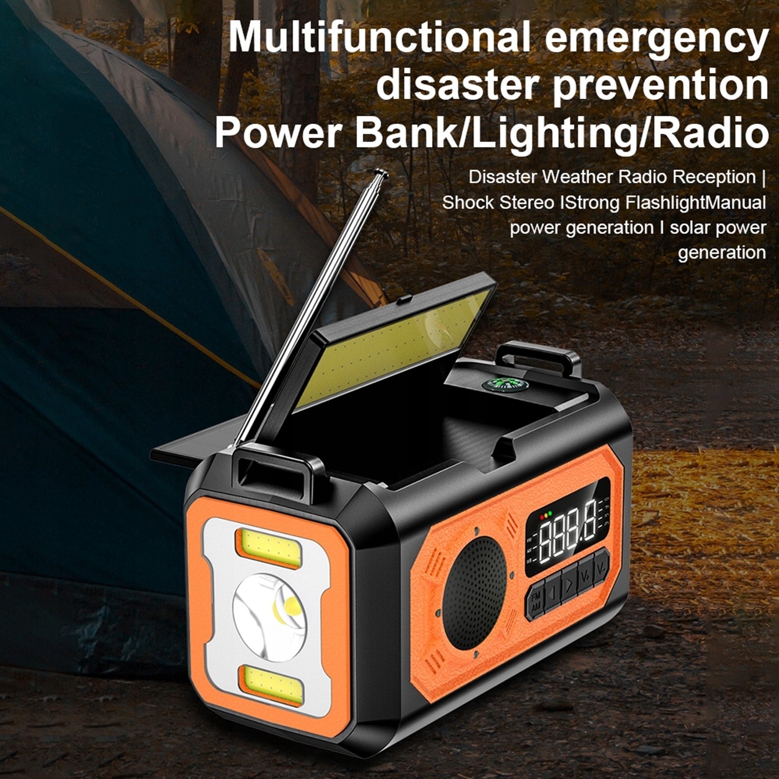 . АВАРІЙНЕ СОНЯЧНЕ ПОГОДНЕ РАДІО 12000 МАГ AM FM SOS З ЗАРЯДНИМ ПРИСТРОЄМ USB І КОМПАСОМ