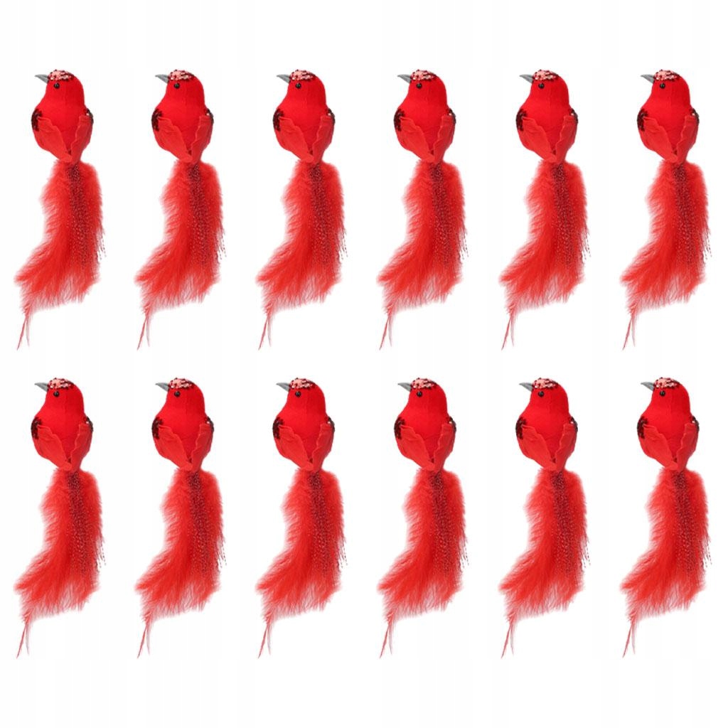 12pcs птахи моделювання штучна мініатюра з кліпом пернат червоним