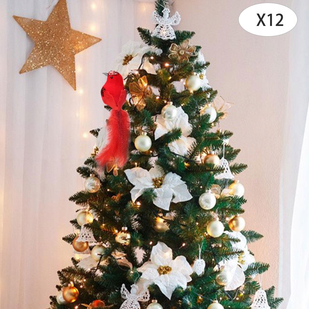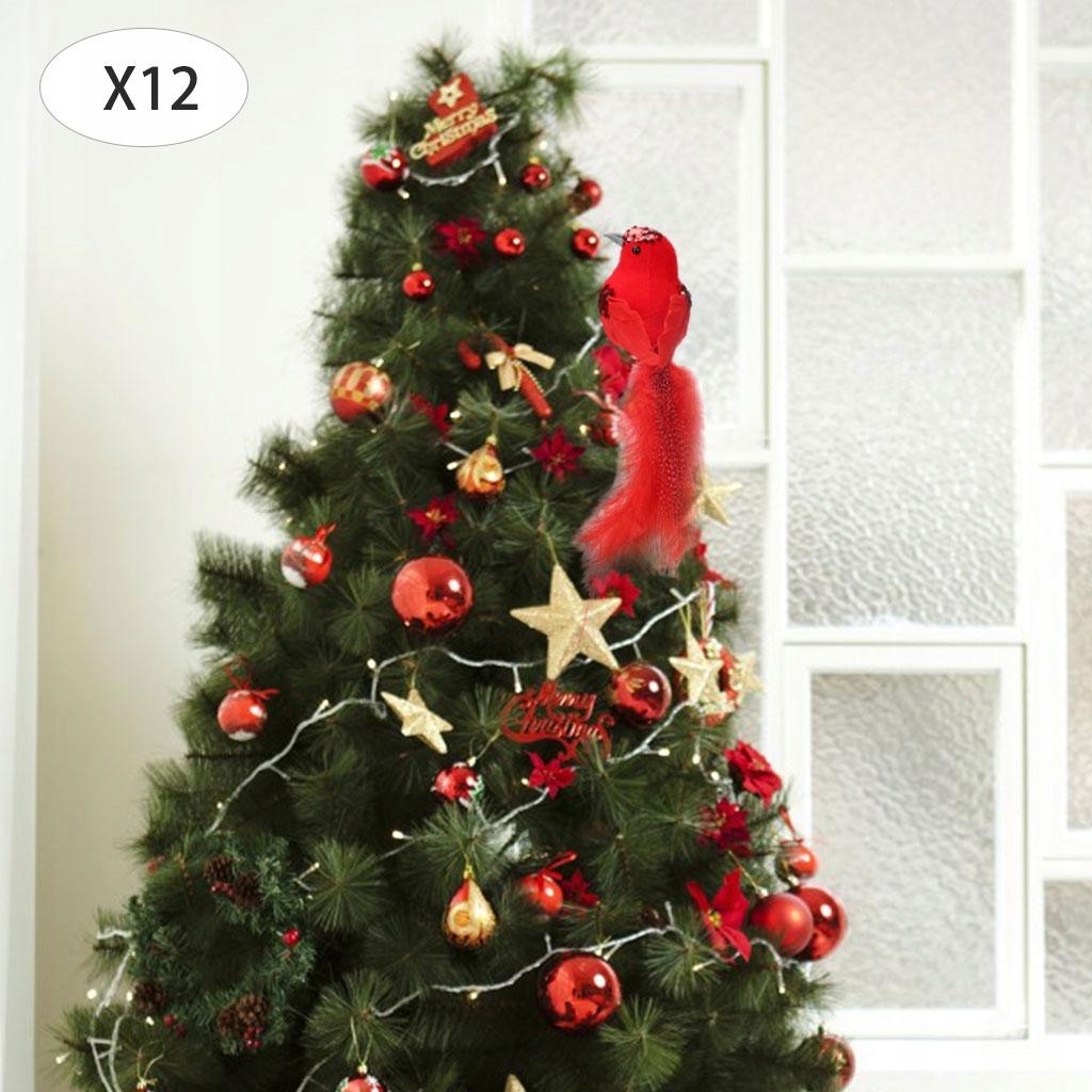 Набір з 12 червоних прикрас, прикріплених до різдвяного кардиналу, кожен має розміри близько 18x5x6cm/7.09x1.97x2, кліп внизу, що дозволяє прикріпити птахи до ялинки, вінки, гірлянди, центральні елементи таблиці.