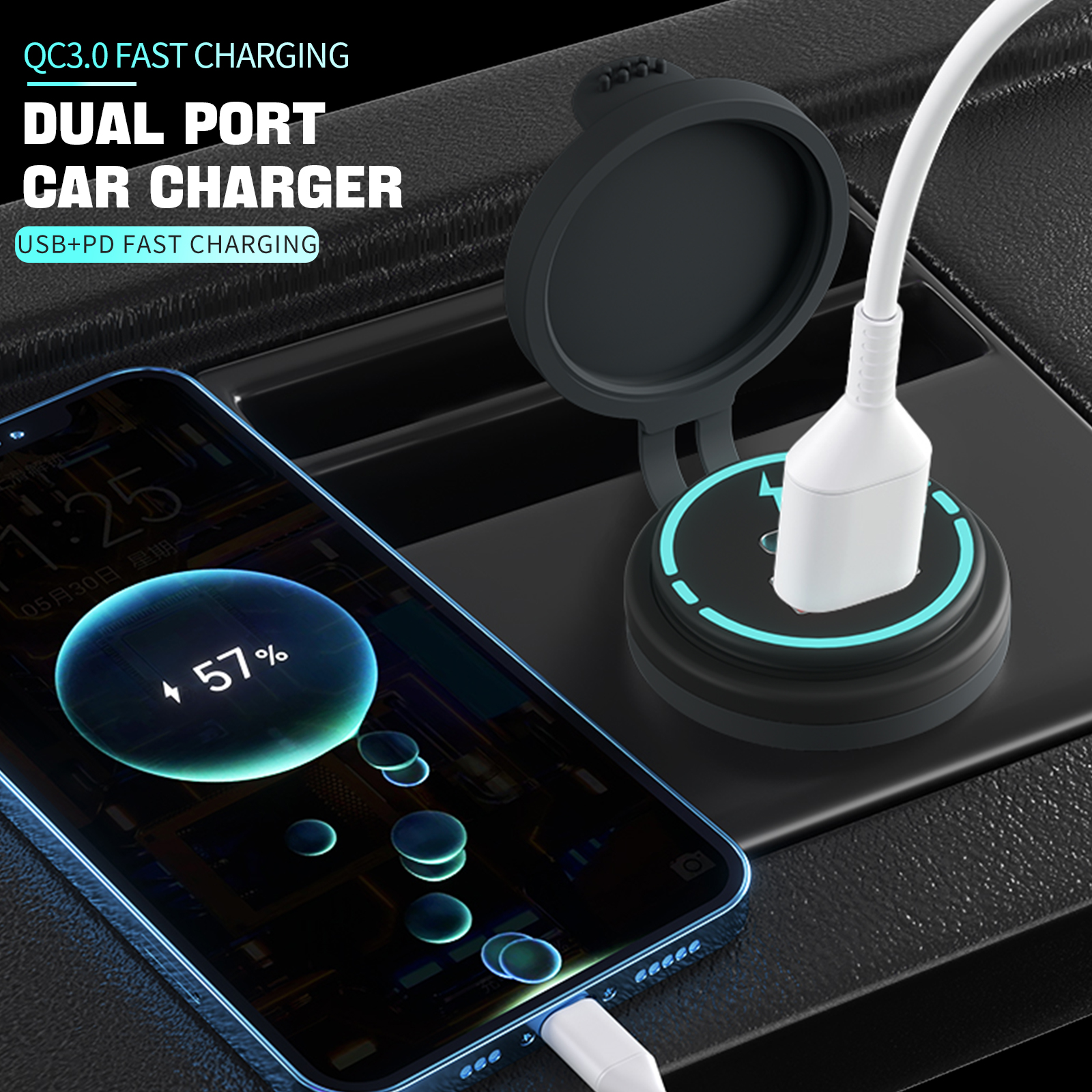 12V-24V QC3.0 Автомобільний зарядний пристрій, швидка зарядка, двопортовий PU