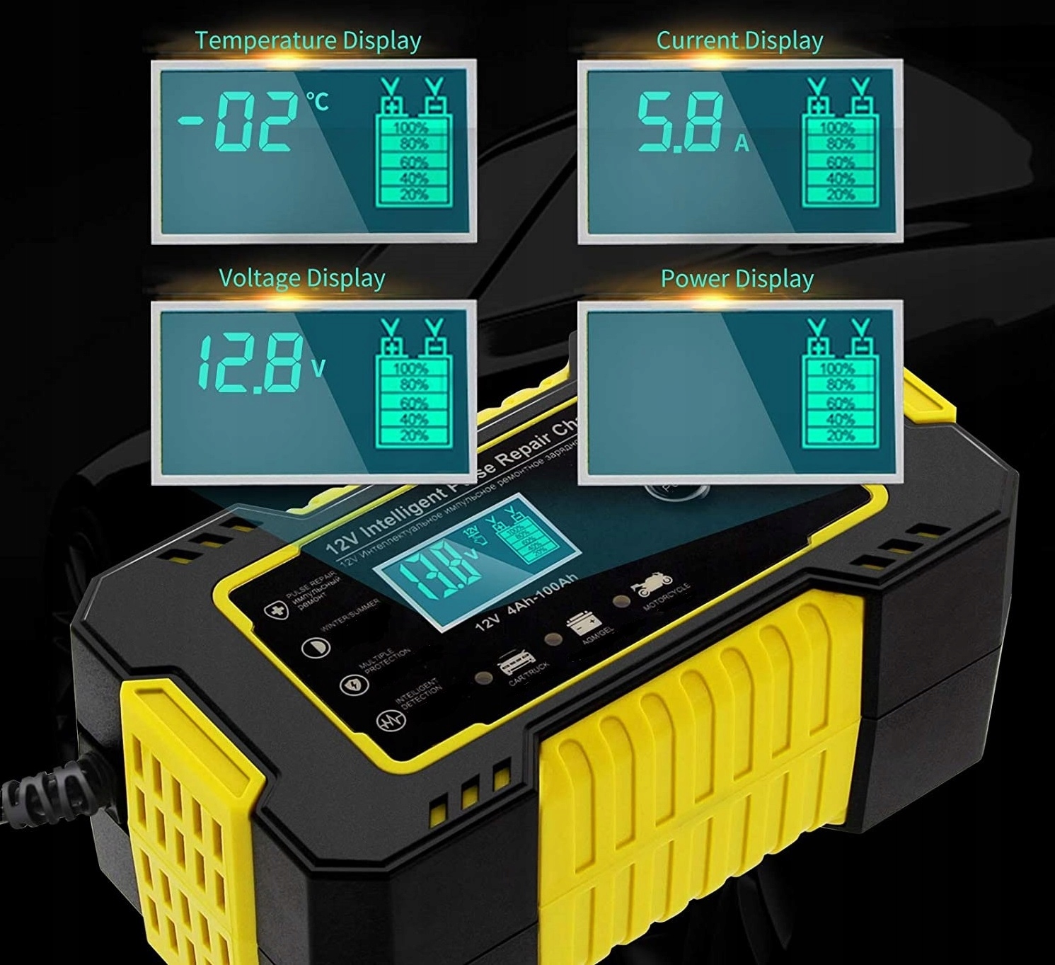Пристрій автоматично визначає температуру навколишнього середовища та вибирає відповідну напругу заряджання залежно від температури навколишнього середовища (літній режим і зимовий режим). У разі зимового режиму - напруга зарядки трохи вище.