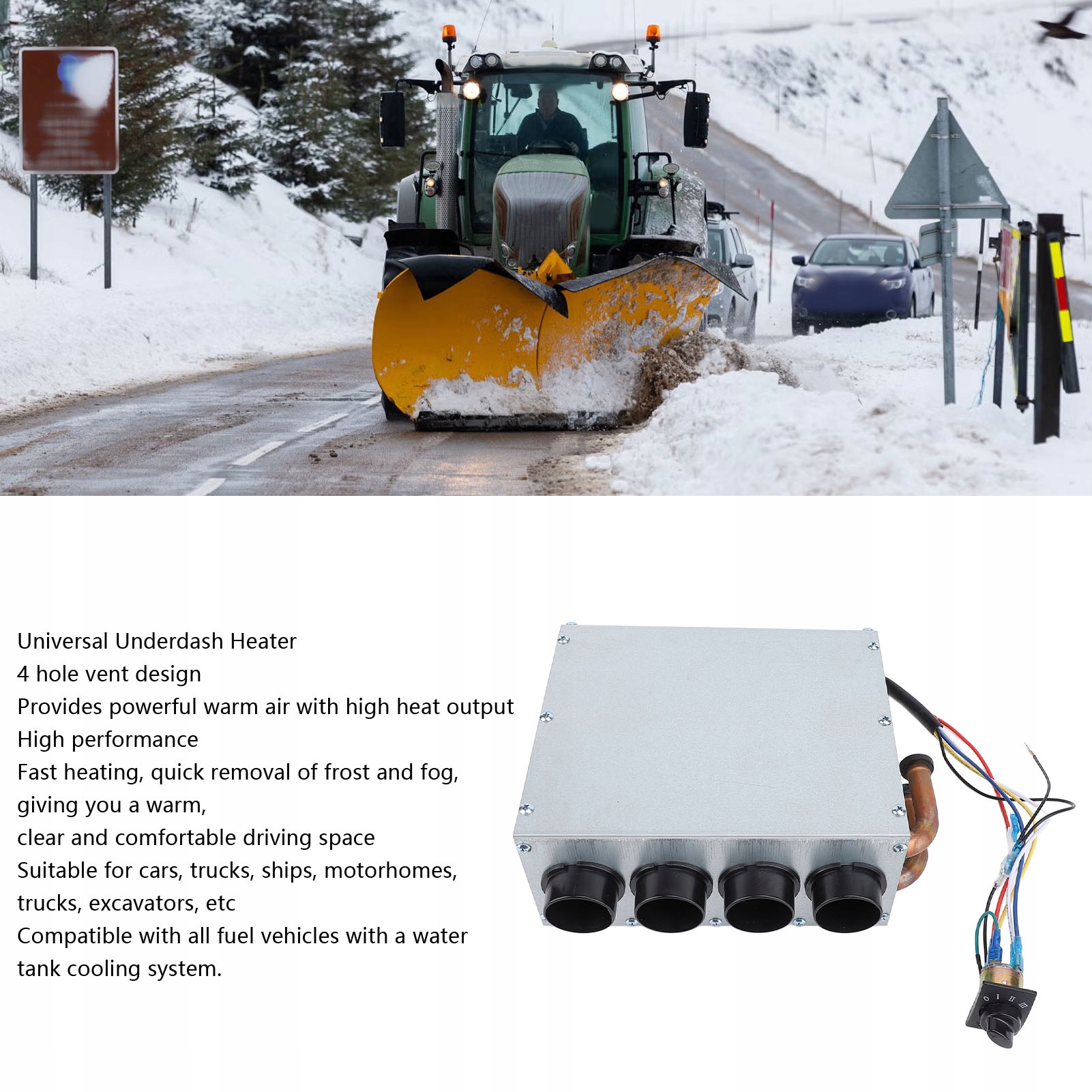 2. Потужний нагрів: забезпечує потужну циркуляцію теплого повітря для швидкого нагрівання, розморожування та видалення запотівання. Конструкція вентиляції з 4 отворами забезпечує високу ефективність тепла та швидке підвищення температури. Ідеально підходить для автомобілів, вантажівок, човнів, кемперів, вантажівок, екскаваторів, комбайнів тощо.