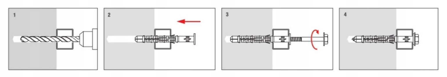 - Розширення в 4 напрямках: збільшує поверхню тиску та несучу здатність анкера