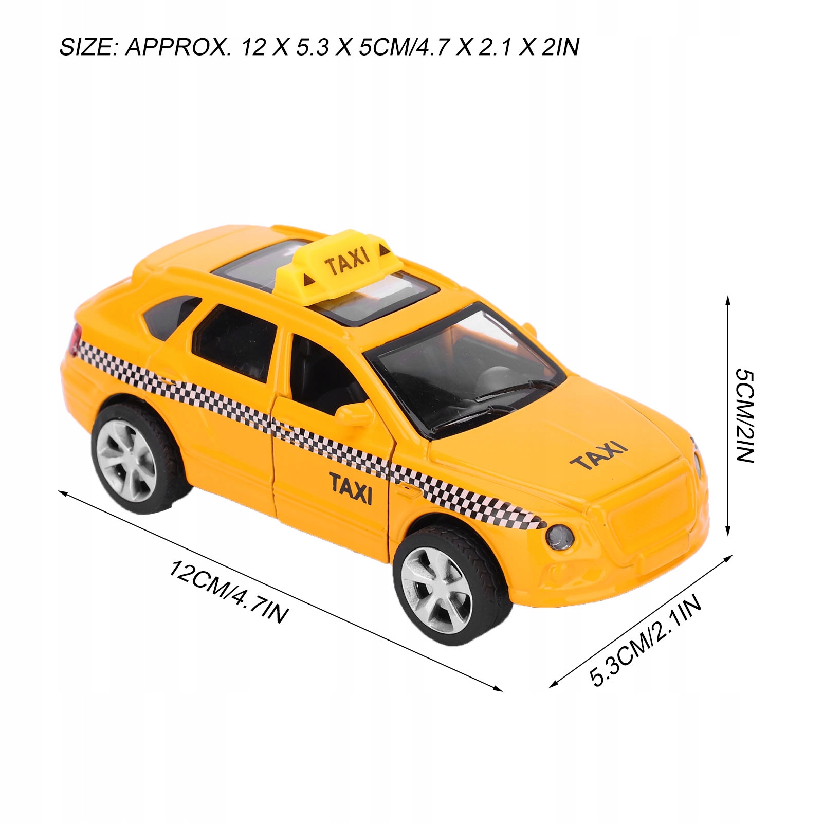 5. Модель іграшкового таксі виготовлена з легованого матеріалу, міцного та стійкого до падіння.