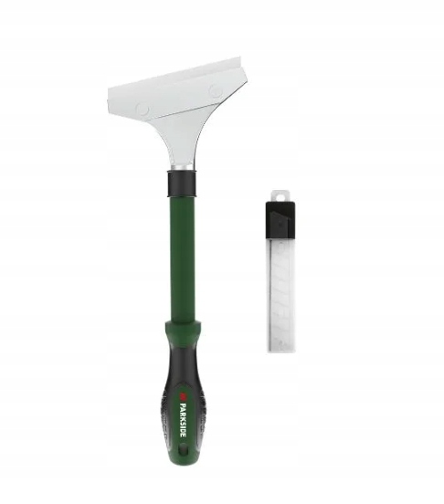скрепер для парксиду до скляних поверхонь - це зручний і ефективний інструмент для зняття резидентів фарби, шпалер, клейкої ключі та інших напоїв. Оснащений діагональним лезом 100 мм та зручною, м'якою ручкою, це гарантує комфорт роботи та точність дії. Крім того, набір включає в себе 6 запасних лез у практичній коробці - готові до інтенсивного використання відразу після розпакування.