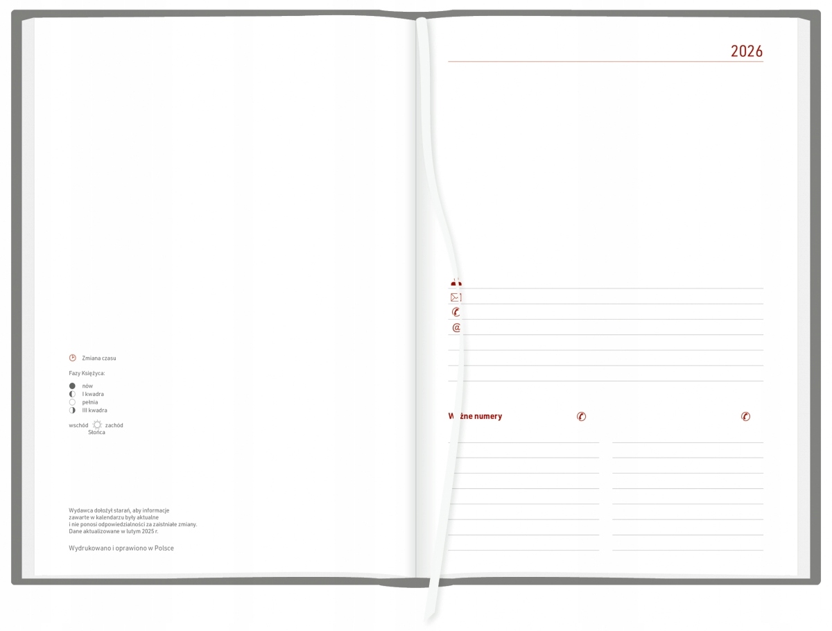 Можливе виготовлення тисненої персоналізації на обкладинці (ім'я та прізвище тиснене на обкладинці) та УФ-друк (з логотипом, присвятою, фотографією) - ці послуги доступні в окремій пропозиції та не входять у вартість. календар.
