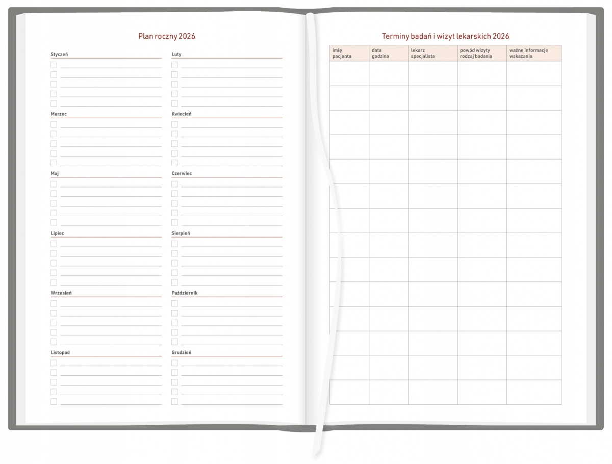 шита та клеєна, дуже міцна та міцна. Чохол матовий і оксамитовий на дотик. Зовнішня палітурка ниткою кольору обкладинки. Дата 2026 тиснена.
