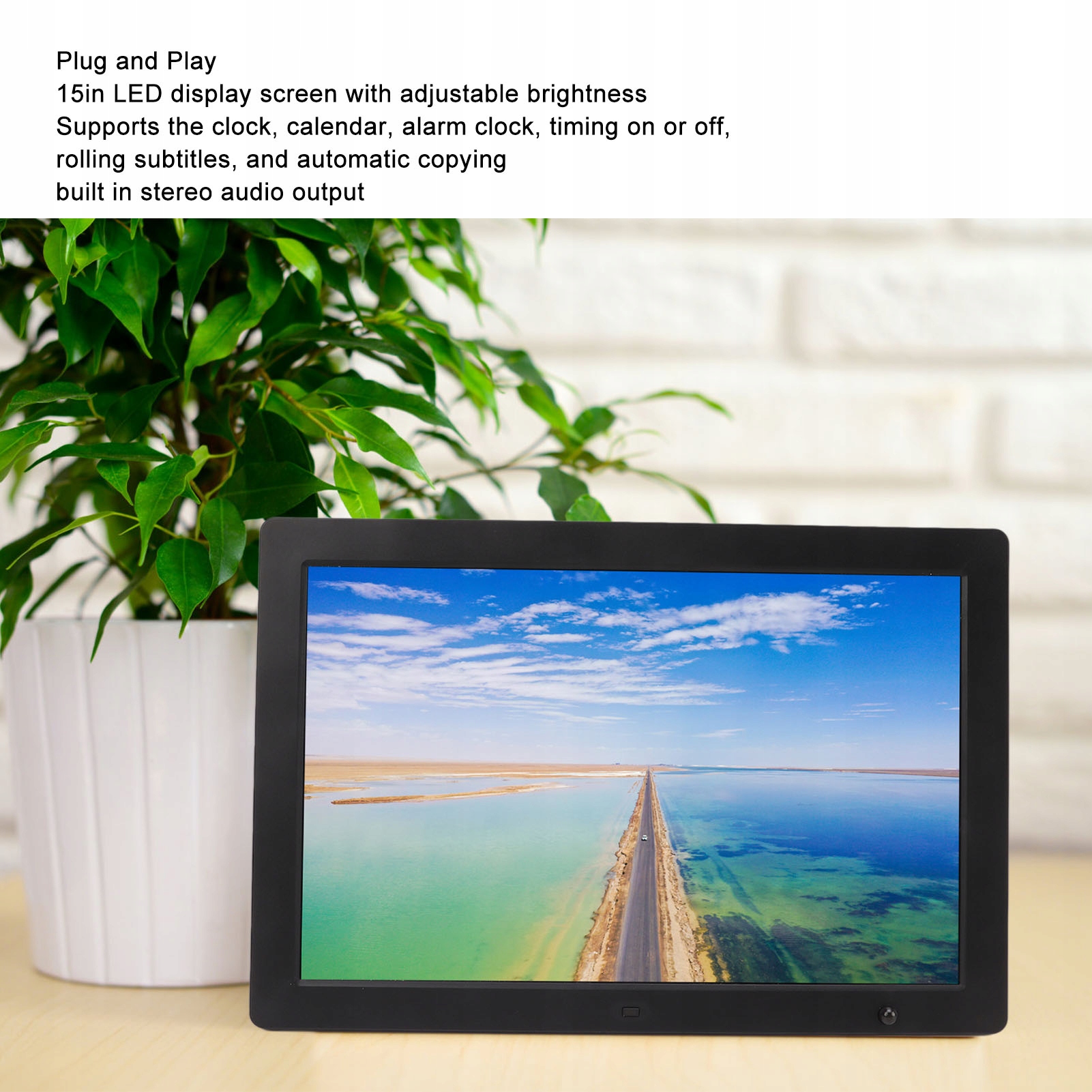 2. 15-дюймовий екран: цифрова фоторамка оснащена екраном із регульованою яскравістю, який забезпечує чудову видимість і яскраві кольори, щоб відтворити кожну чудову мить і створити чудове візуальне свято.