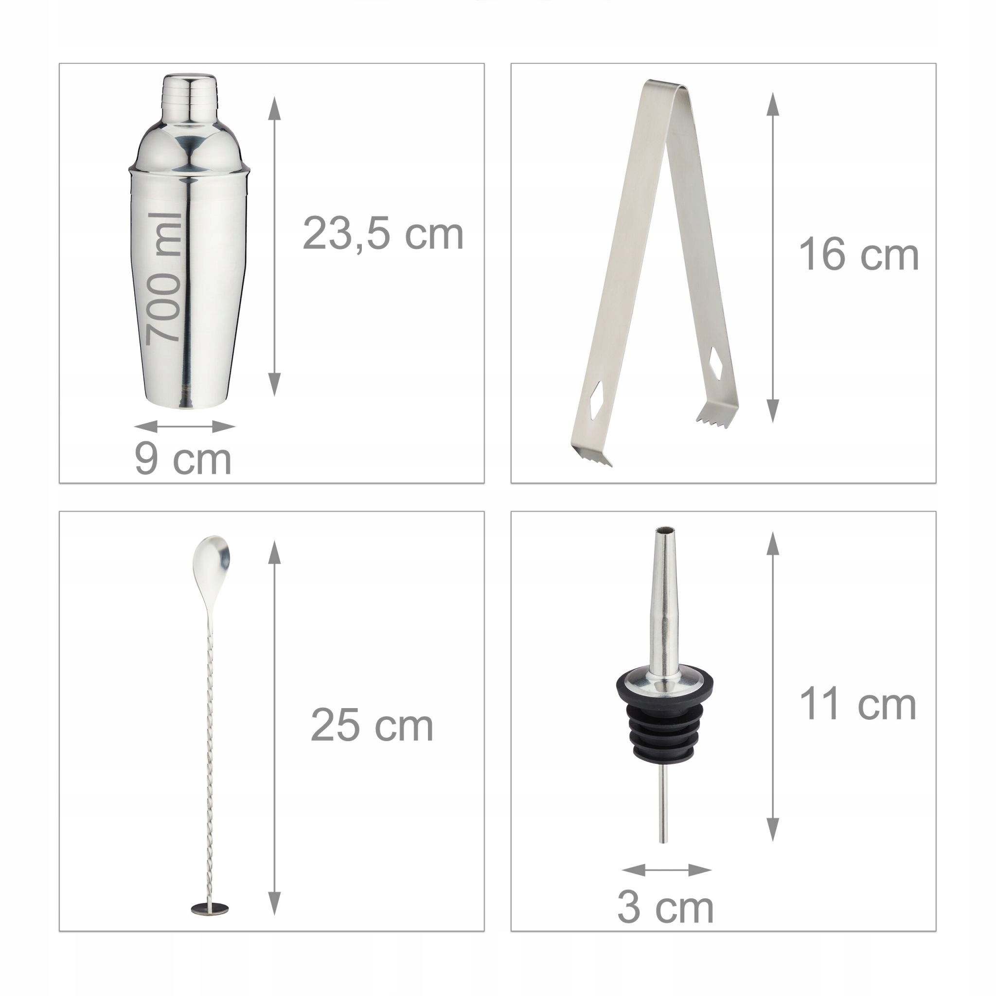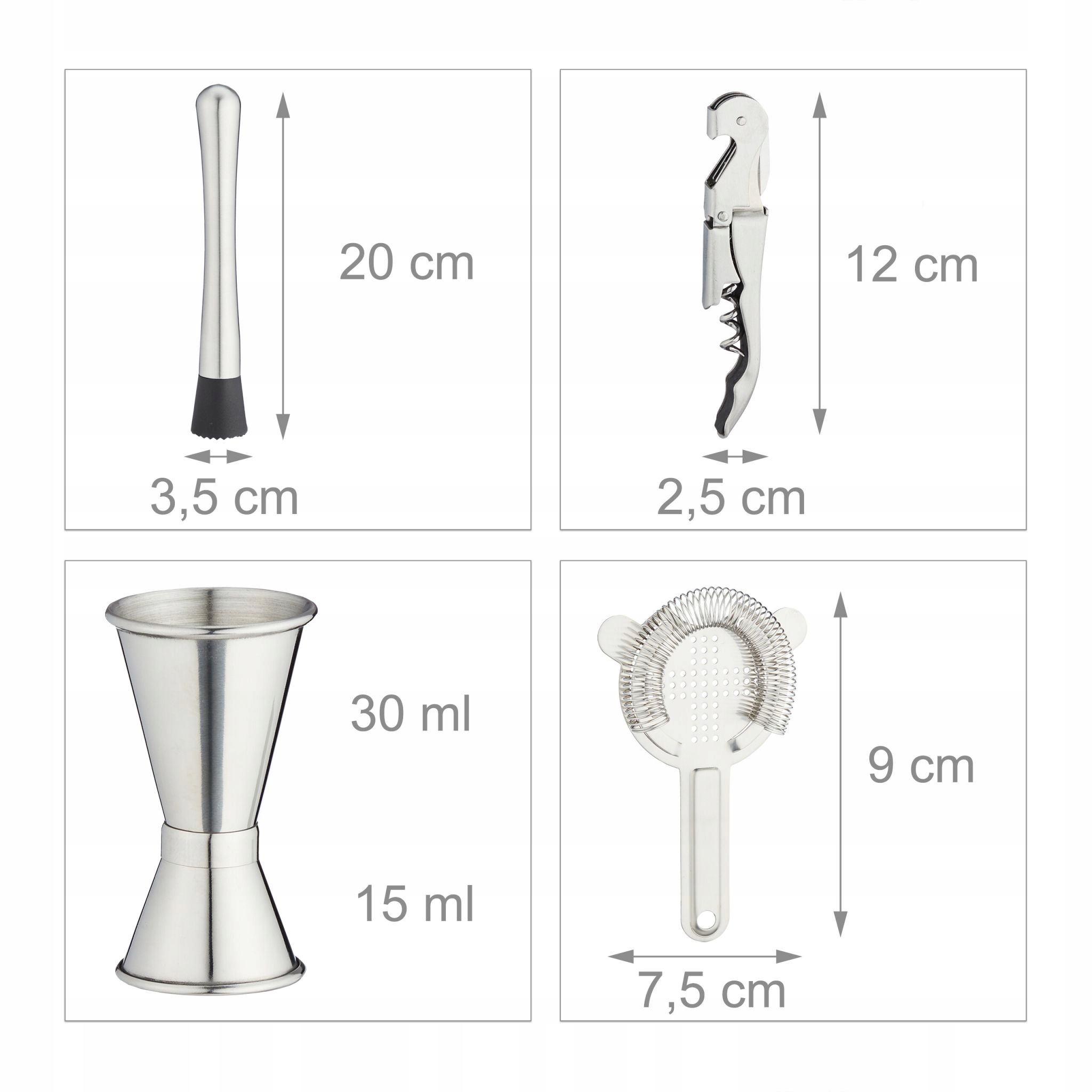 Завдяки цьому ексклюзивному наборі барменів з високоякісною нержавіючої сталі ви можете створити власні коктейлі, макетні та багато інших напоїв. Здивуйте своїх друзів із собою змішані довгі напої. Набір коктейлів - це практичний аксесуар для домашнього бару не тільки для аматорів, але і для досвідчених барменів. Обширні коктейльні аксесуари, виготовлені з нержавіючої сталі, чудово виглядають на підставці, виготовленому з натурального бамбука, а також виконують декоративну функцію.