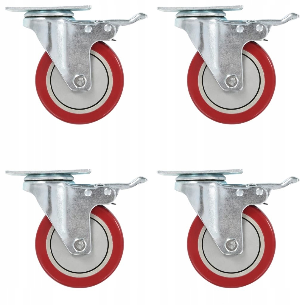 Колеса виготовлені з ПВХ, який характеризується хорошою стійкістю до ударів і вібрації, забезпечуючи плавну і тиху їзду. Крім того, їх м'яка поверхня ефективно захищає підлогу від подряпин. Крім того, рама з оцинкованого заліза має високу стійкість до іржі, що підвищує міцність і довговічність коліс. Крім того, вони оснащені гальмами для полегшення керування. Максимальна вантажопідйомність кожного колеса становить 80 кг.