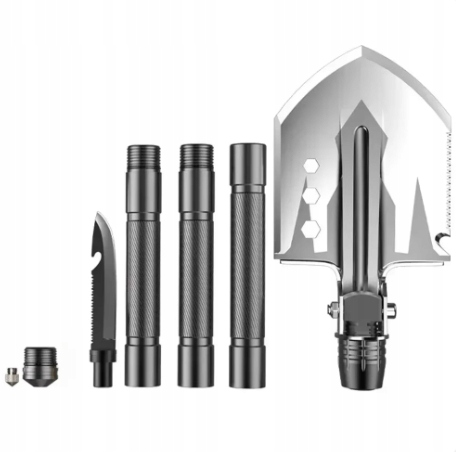 Завдяки компактному розмірах та прикріпленому обкладинці, сапер можна легко зберігати та транспортувати. Він складається з чотирьох основних елементів, які підключаються до інструменту до 76 см завдовжки. Він легкий, але в той же час твердий завдяки структурі алюмінію та сталі, що робить його ідеальним для виживання або домашнього використання.