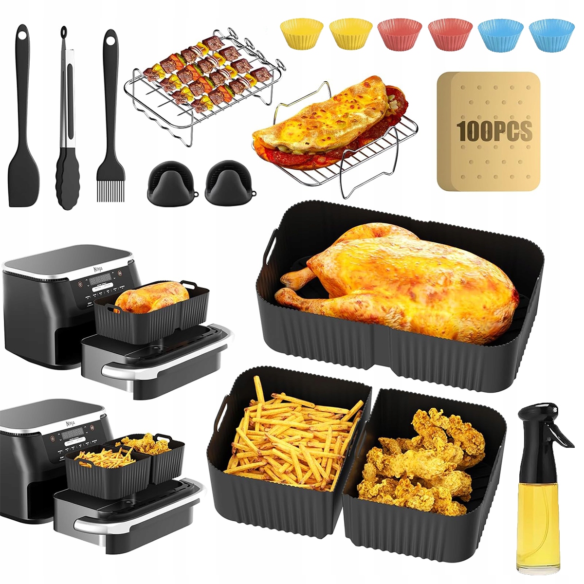 - ✅【Аксесуари додаткової місткості для Ninja AF500EU для більшої насолоди】Наші силіконові моделі, на 3 см вищі за традиційні вставки, пропонують більшу місткість, дозволяючи готувати кілька страв одночасно та ідеально підходять для спільних обідів із сім’єю.