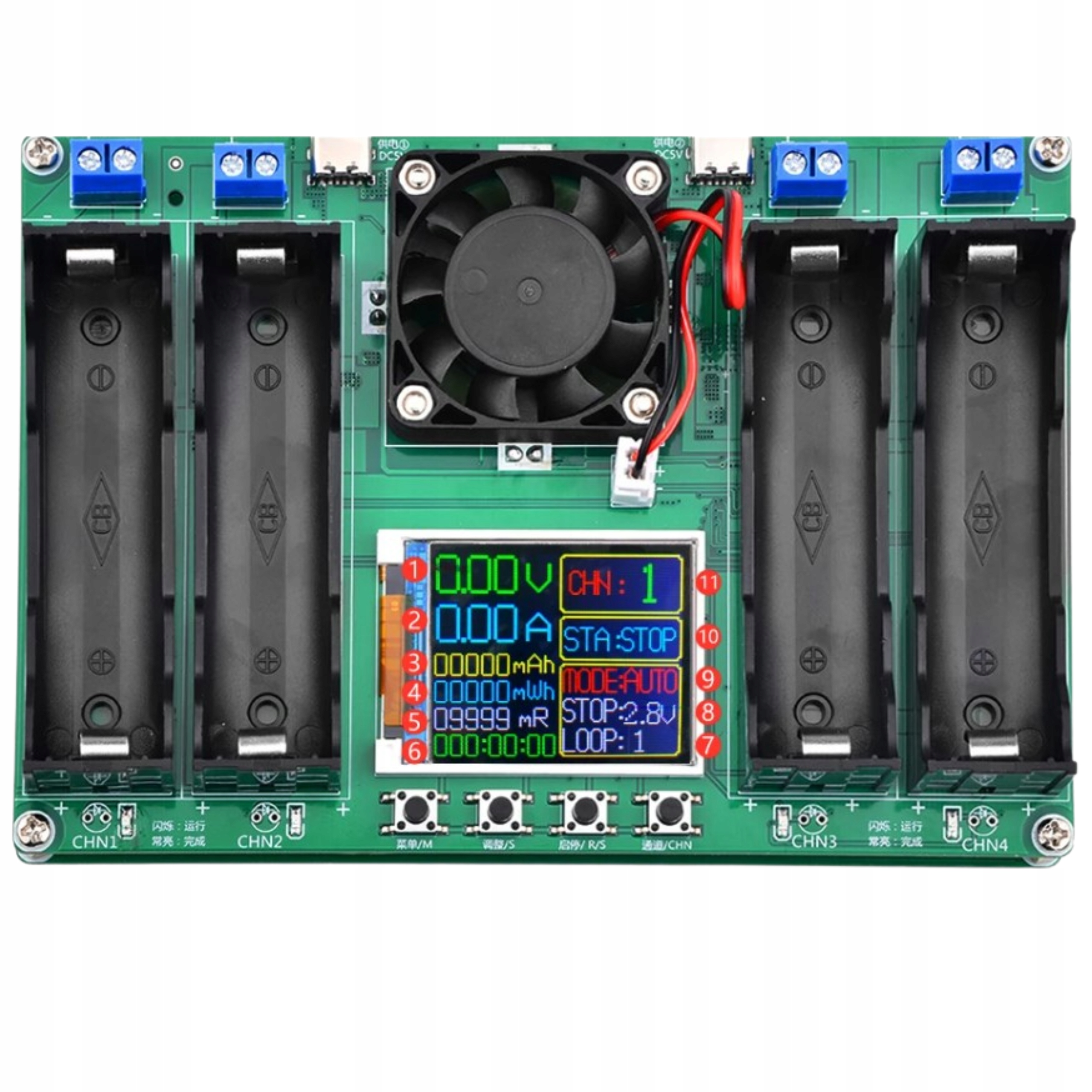 Наш вдосконалений тестер ємності акумуляторних елементів ⭐18650 4k⭐ є ідеальним пристроєм для точного вимірювання ємності та внутрішнього опору елементів, з можливістю заряджати їх через порт USB-C. Дозволяє одночасно тестувати 4 літій-іонні батареї 18650.