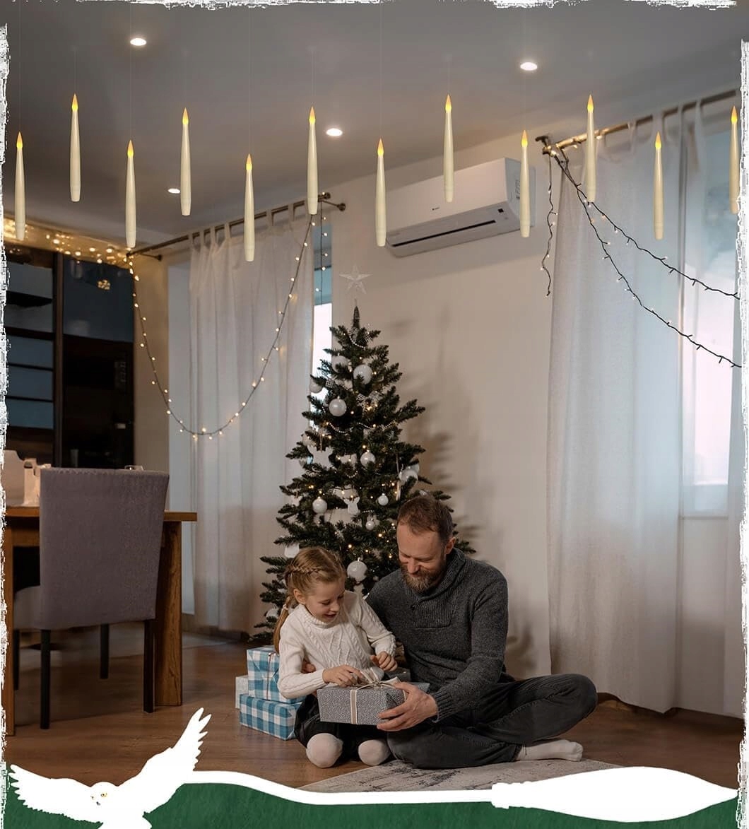 - Декорації в приміщенні: мерехтливі свічки є ідеальним доповненням до вашої кімнати. Ви можете повісити ці свічки на стелю або люстру, щоб створити ефект «ширяючої» свічки для вечірки на тему кіно. Вони також чудово підходять для обіднього столу, каміна, спальні, класу, церковної служби, дня народження, Хеллоуїна, Різдва