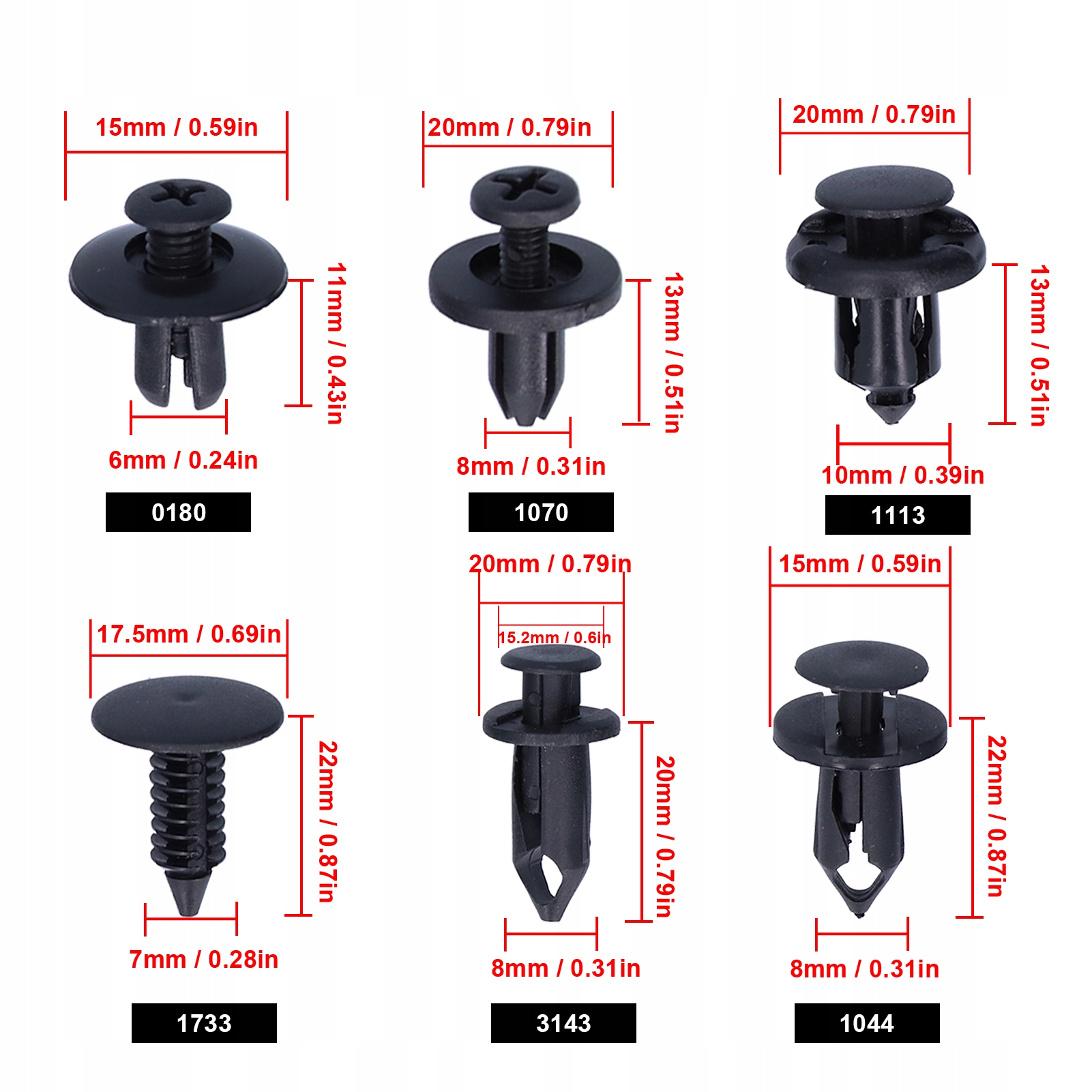 190pcs Автоматичні функції Кліпи 6 змішаних розмірів Постійні поїздок до CQ
