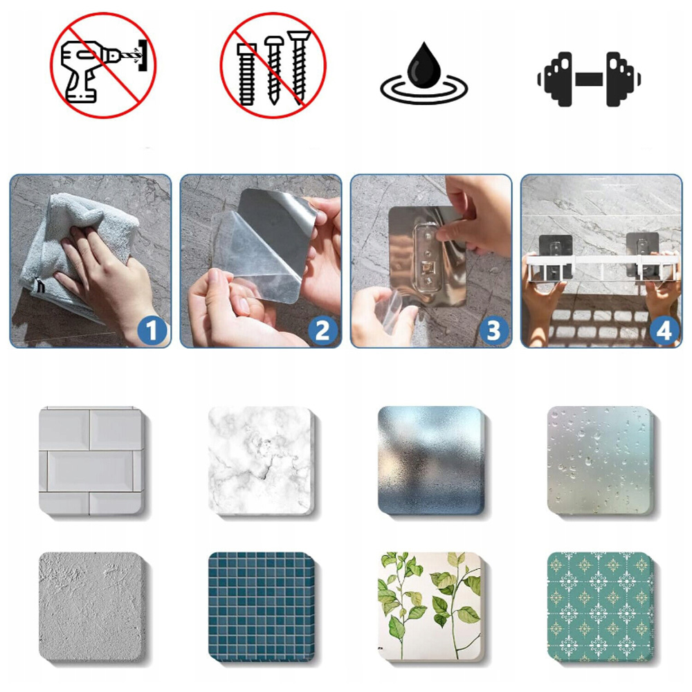 🚿 🚿 🚿dwiemie Варіанти кріплення: Вибирати з самостійного або з просвердленими отворами, залежно від стіни. Наша душова полиця може бути встановлена самостійним клеєм на чистих, гладких, плоских стінах (наприклад, плитка, скло); У випадку з нерівними стінами (наприклад, пофарбованими, оштукатурними шпалерами тощо), душова полиця також може бути встановлена шляхом буріння для більшої стабільності та постачається з буровими аксесуарами.