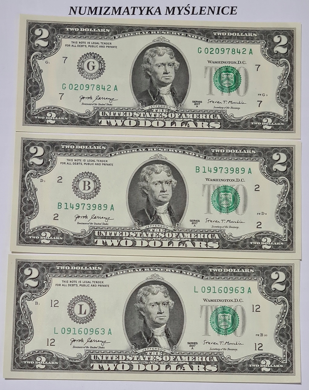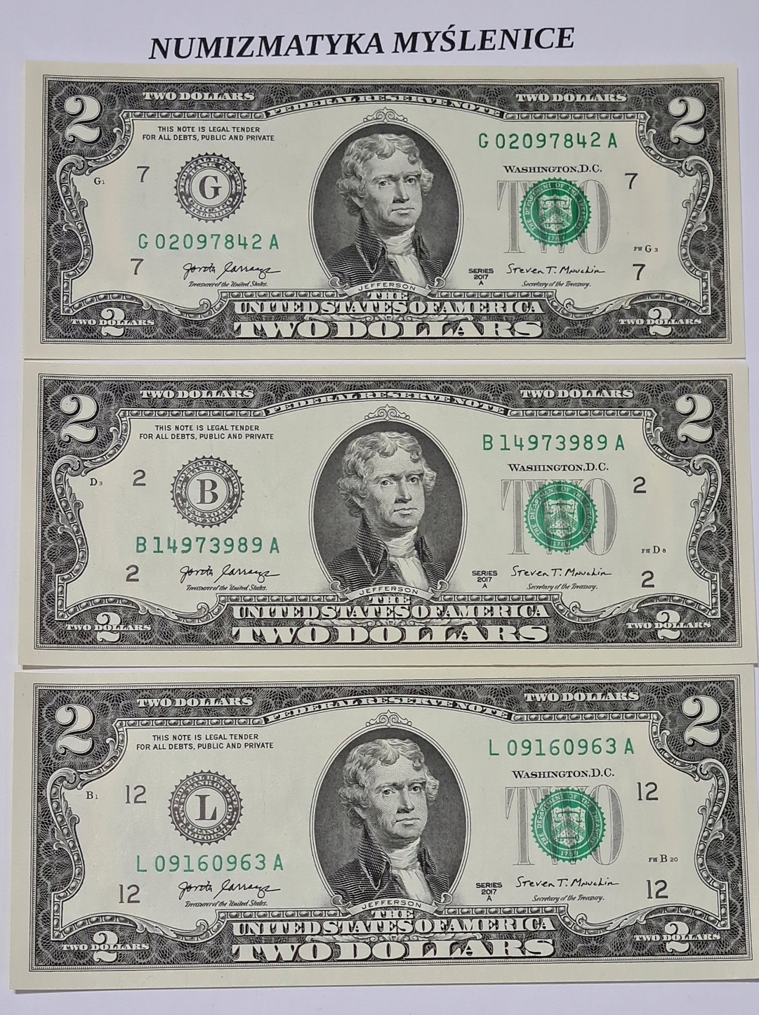 2 ДОЛАРИ - НАБІР З ТРЬОХ МОНЕТНИХ ЦЕНТРІВ - B, G, L 2017