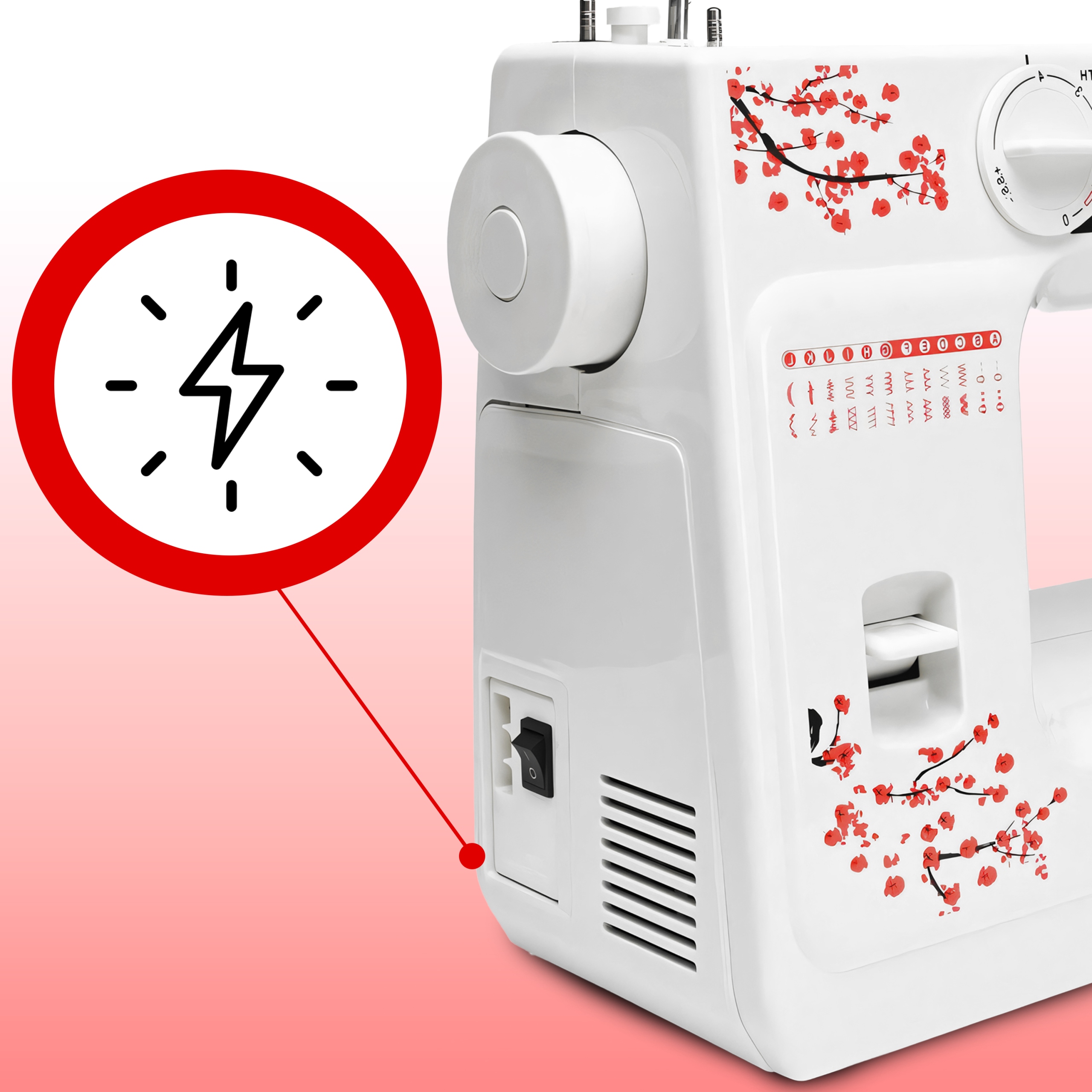 ☀️ Швейна машина оснащена кнопкою зворотного стібка, яка дозволяє легко закріпити кінець стібка, запобігаючи його розриву та забезпечуючи довговічність зроблених стібків.