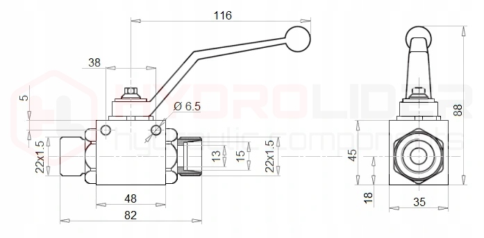 2-ХОДОВИЙ ГІДРАВЛІЧНИЙ РУЧНИЙ КУЛЬОВИЙ КРАН M22 60 Л HYDROLIDER