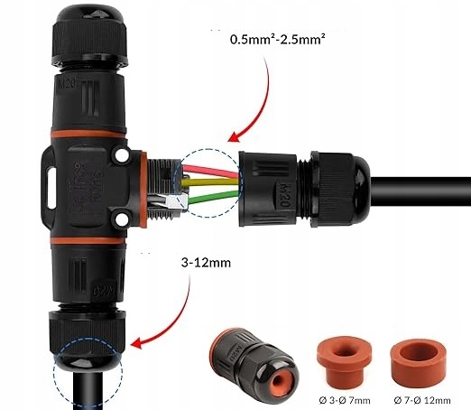 - Багатоцільове використання: водонепроникний корпус IP68 підходить для кабелів діаметром 3-12 мм. Водонепроникні кабельні з’єднувачі підходять для зовнішнього освітлення, освітлення тунелів, вуличного освітлення, ландшафтного освітлення, підводного освітлення, садових ліхтарів, вуличних ламп, ліхтарів для газонів тощо.