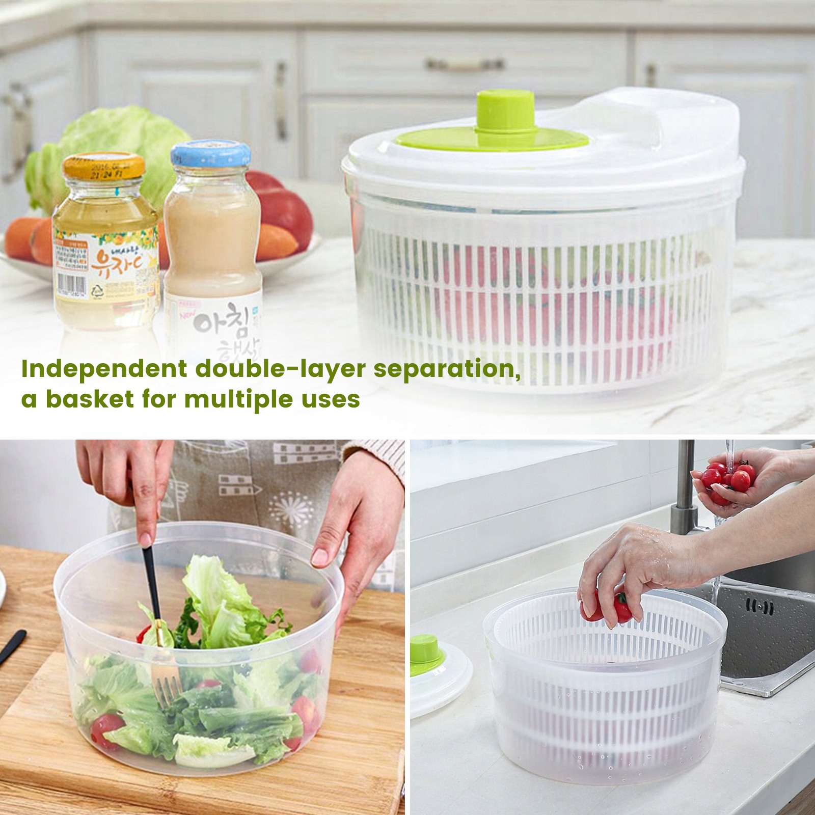 Економія часу та роботи: Просто поверніть велику ручку роторної сушарки для салату, щоб помити та висушити овочі за кілька секунд. Ви можете готувати багато салатів одночасно, що легко та економить роботу