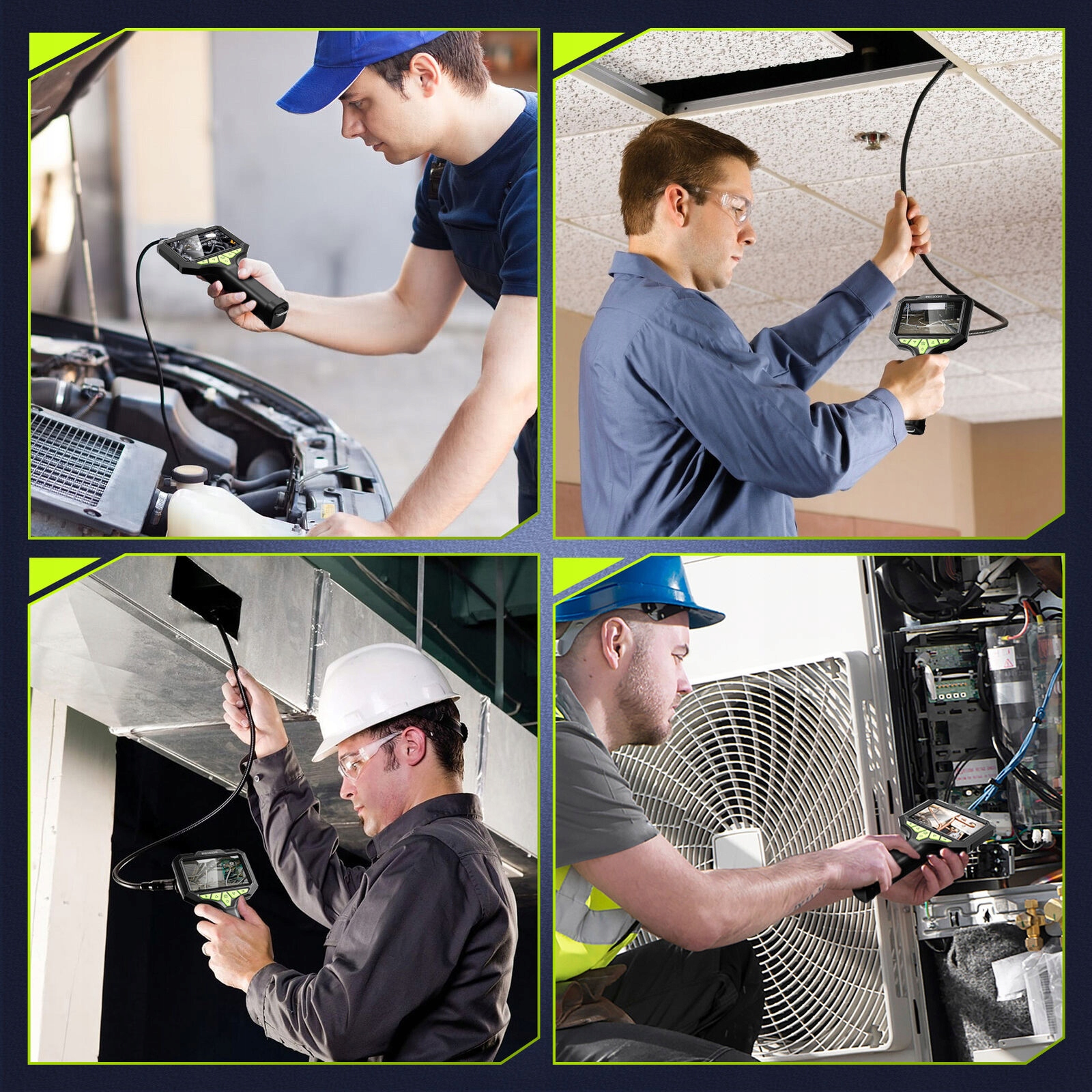 Ця оглядова камера з подвійним об’єктивом і 5-метровим напівжорстким кабелем добре виготовлений і підходить майже для будь-якого проекту, тож ви можете легко перевірити дренажі, двигуни автомобілів, стінові конструкції та дренажі систем опалення, вентиляції та кондиціонування.
