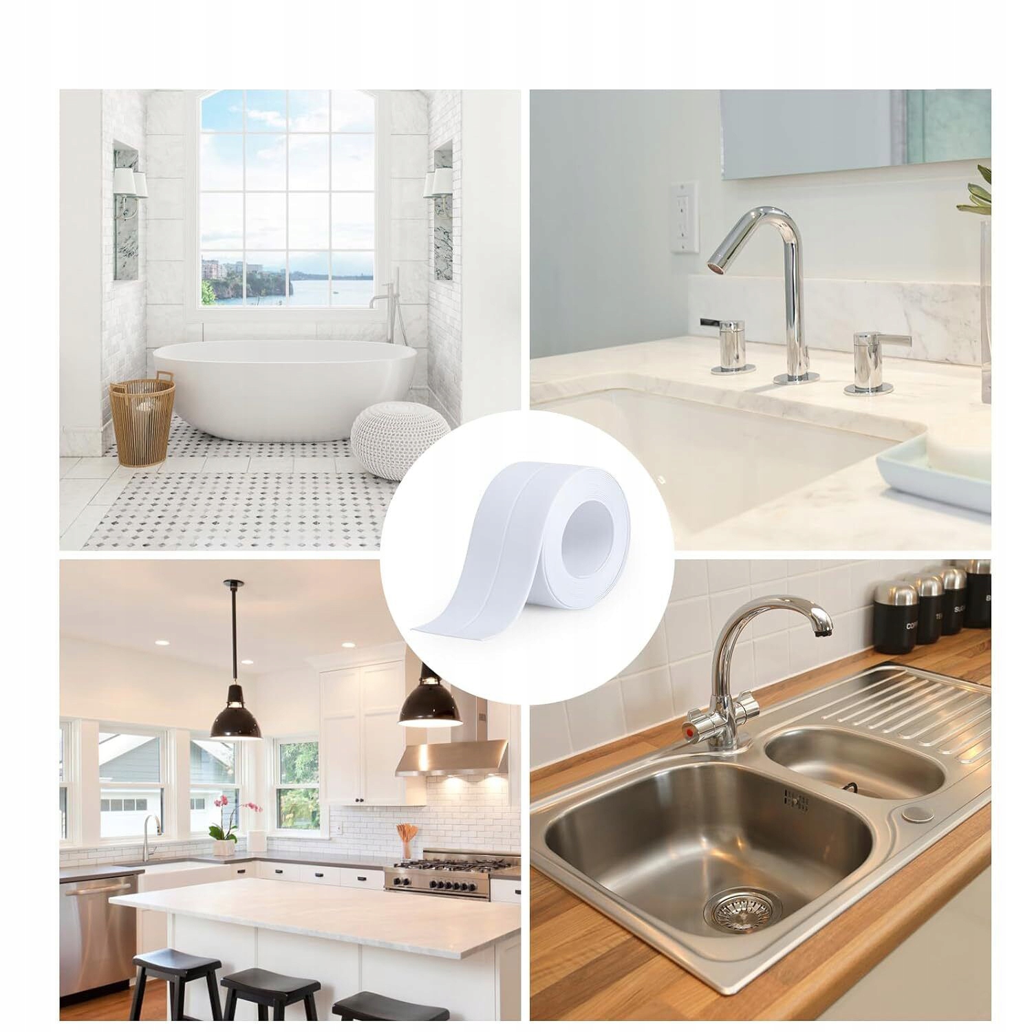 ✅ Спеціальний дизайн: ця водонепроникна ущільнювальна стрічка має гладку поверхню та хорошу герметичність, її можна використовувати не лише на кухні, але й також можна використовувати як лінію для прикраси будинку, яку можна використовувати при високій або низькій температурі та вологому середовищі.