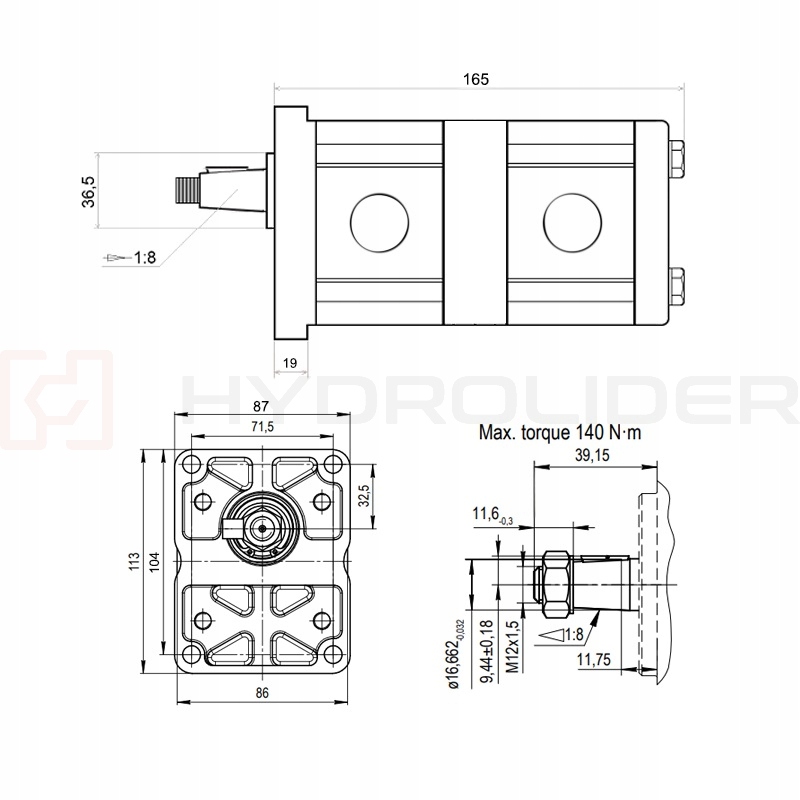 2-СЕКЦІЙНИЙ ЗУБЧИЙ НАСОС, ГРУПА 2, ПРАВИЙ 12/8 см3/об Потужність: 18/12 л/хв.