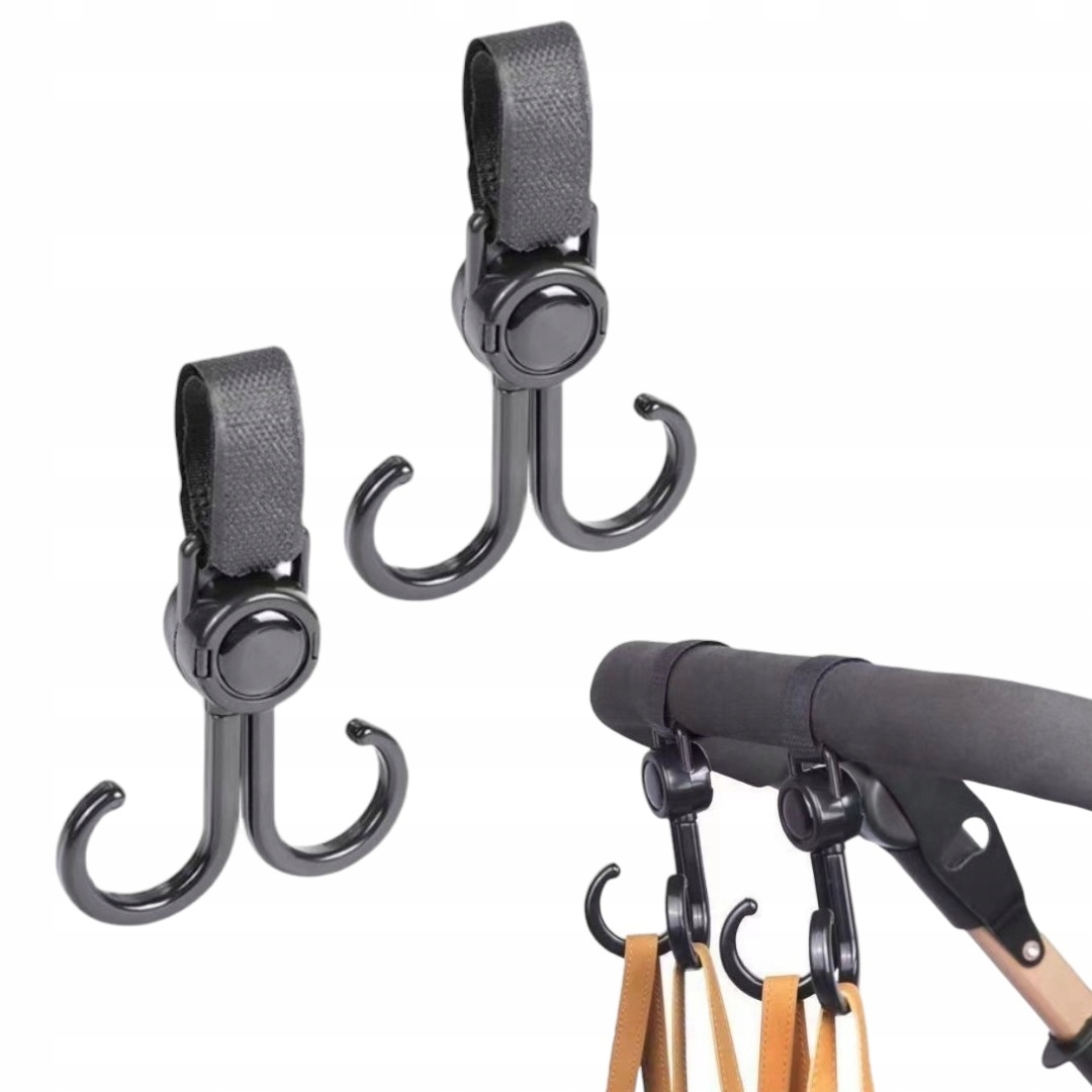 4Практичні, універсальні гачки, встановлені на ручці коляски - ідеально підходять для підвісних мішків, торгової сітки, рюкзака або догляду. Тверда конструкція забезпечує безпеку та комфорт під час прогулянок з дитиною.