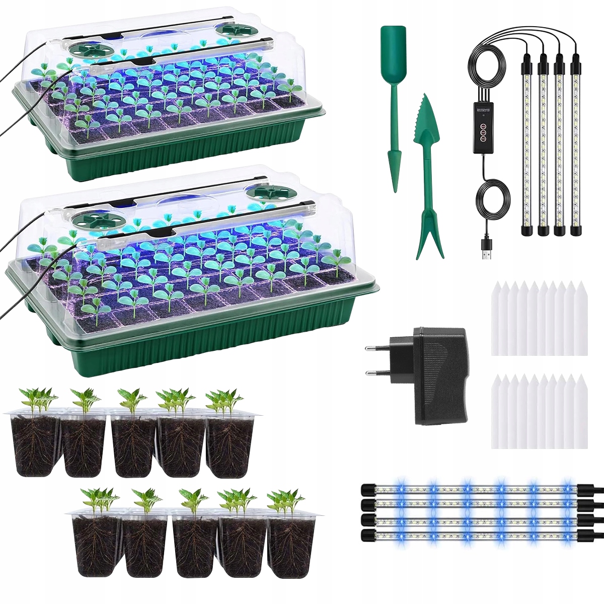 🧩🧩🧩 Контейнер для розмноження в теплиці в приміщенні, 2 шт. лотки для розсади на 80 клітинок, лотки для розсади з лампою для освітлення рослин і етикетками, маленькі садові інструменти для розсади