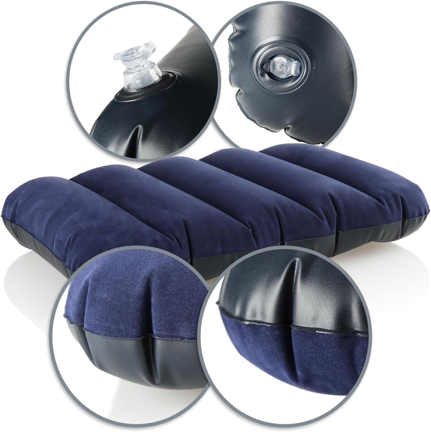 2x Надувна подушка - Зручна дорожня подушка для автомобіля, поїзда та автобуса, для кемпінгу - кишенькова надувна подушка (43x28x9 см - блакитна)