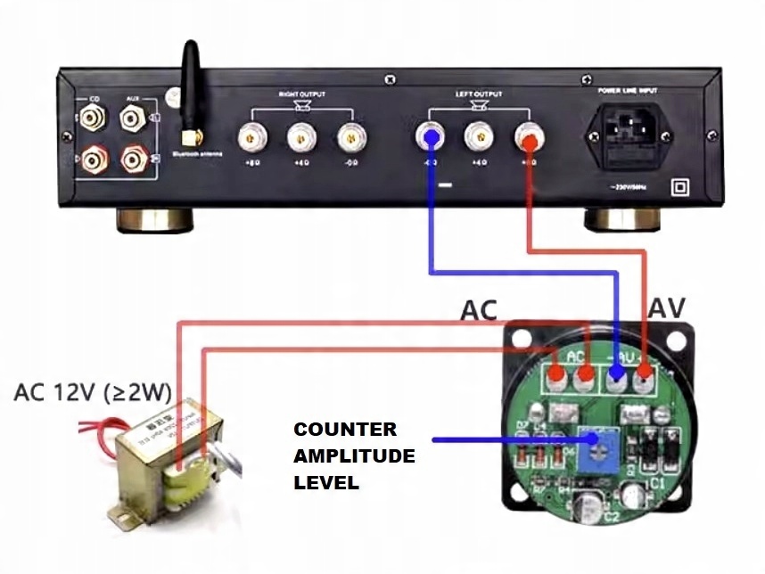 - підключити лічильник до виходу підсилювача (8 Ом, якщо доступно),