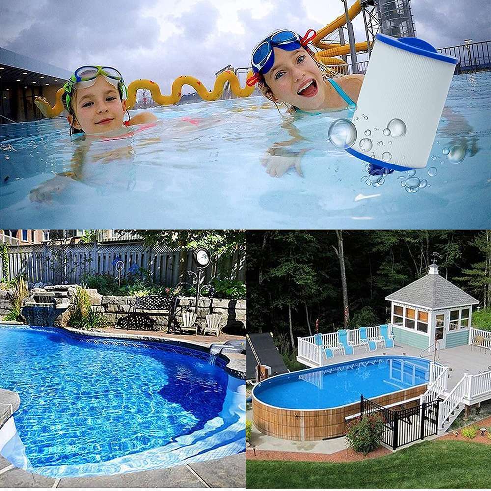 🏊🏻【Висока якість】 Фільтруючий елемент виготовлено з поліефірного матеріалу, який легко чистити та замінювати , його можна прати та використовувати повторно. Поліефірні волокна також допомагають уловлювати частинки, покращують ефективність без зменшення падіння тиску та допомагають зменшити частоту очищення фільтра.