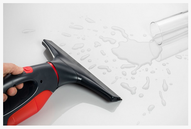 Електричний омивач вікон Vileda має рухливу головку, яка гарантує, що ракель ідеально досягає очищених поверхонь.