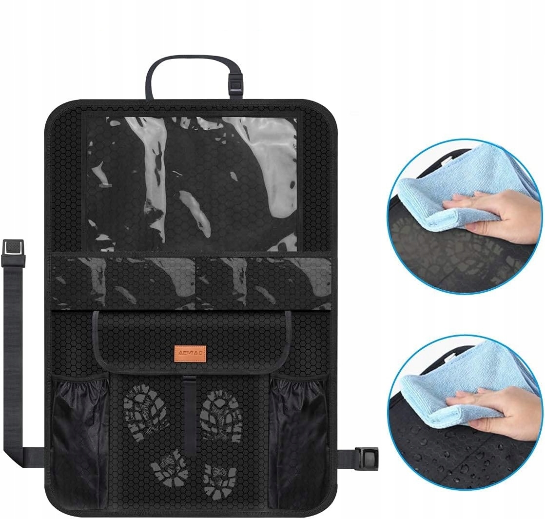 Високоякісний матеріал: захист заднього автомобільного сидіння виготовлено з міцної тканини Оксфорд. 600D, нейлон (сітчастий мішок), ПВХ (прозора кишеня). Водонепроникний матеріал, який легко чистити, просто використовуйте вологу губку або тканину для чищення.
