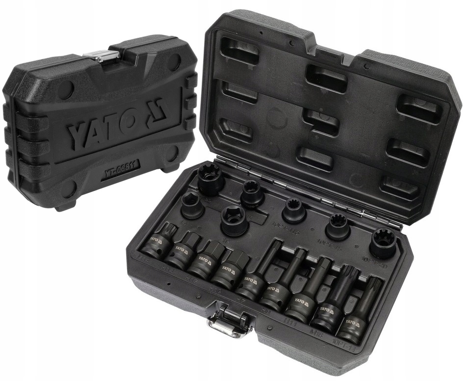 - Вміст набору: спеціальна п’ятикутна гніздо 1/2” x2 (5-точкове: 14 мм, 19 мм) | гніздо 1/2” x5 (7-точкове: 14 мм, 22 мм; 10 точок: 11,5 мм, 15 мм, 20 мм)|
