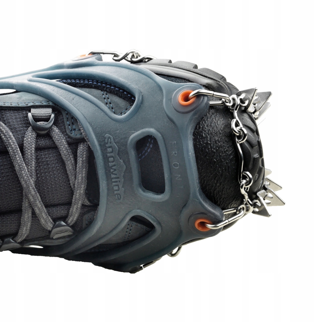 Ручки для взуття Snowline Chainsen Pro XT – це обладнання, розроблене для вимогливих користувачів. Це модель, яка ідеально підходить не тільки для більш легких маршрутів, але і в більш складних гірських умовах. Він оснащений цілими 17 зубцями, кожен довжиною 13,4 мм, в тому числі 6 зубчиків на носку черевика. Завдяки такій структурі ручки забезпечують стабільність і впевненість при ходьбі при підйомі по крутих схилах.