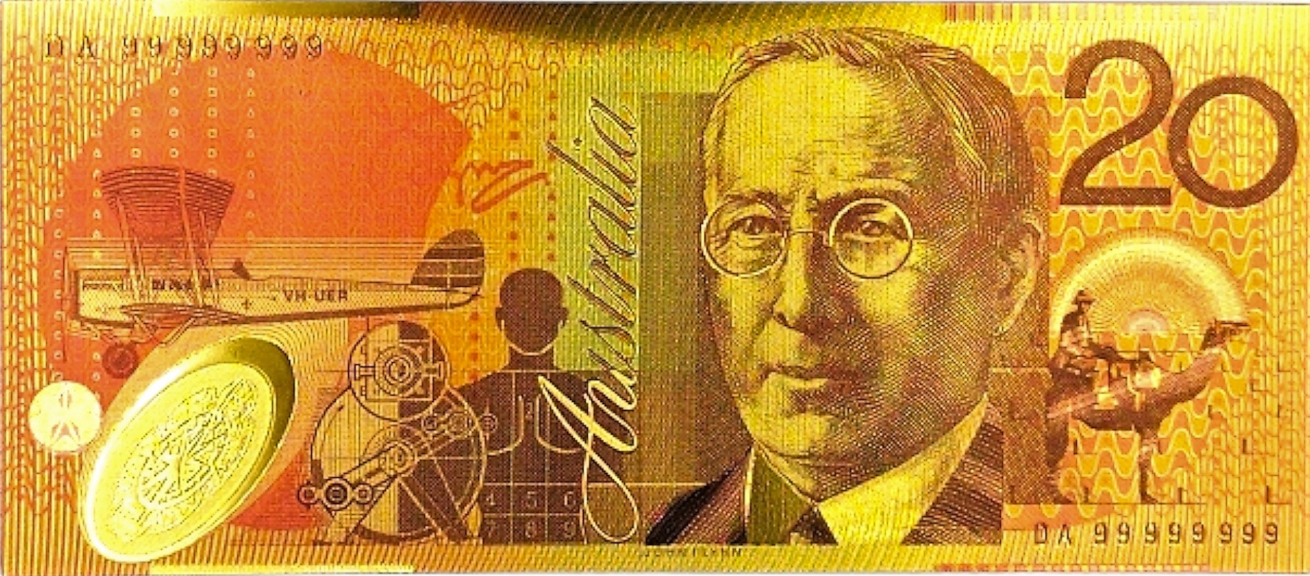 20 АВСТРАЛІЙСЬКИХ ДОЛАРІВ Позолочена банкнота