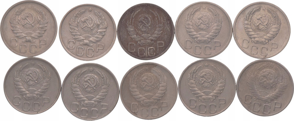 20 копійок 1935, 36, 38, 39, 40, 41, 43, 45, 46, 48 - Лот 10 штук (53-54)