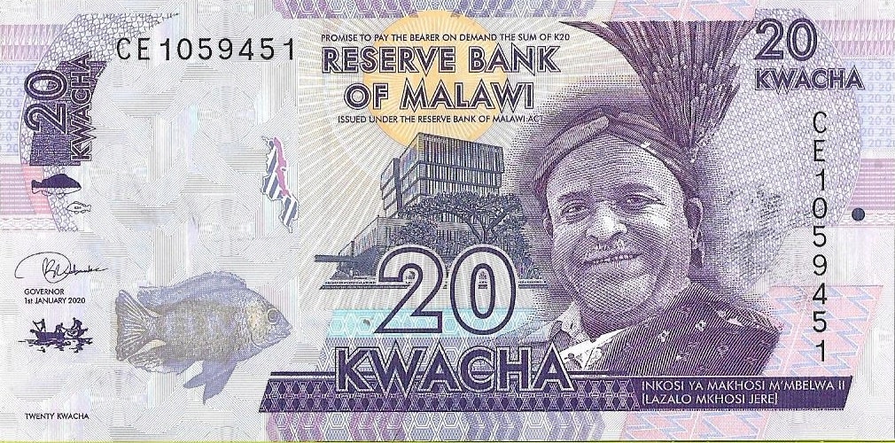 - Номінал: 20 MK - малавійська квача
